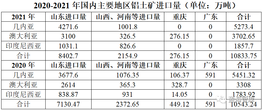 2021年12月,中国铝土矿进口量872.69万吨,同比增加16%,环比增加13%。1-12月,中国进口铝土矿数量达到1.074亿吨,比去年减少3.72%,纵观全年进口矿市场,海运费的大幅上涨是导致进口矿数量减少的原因之一。
