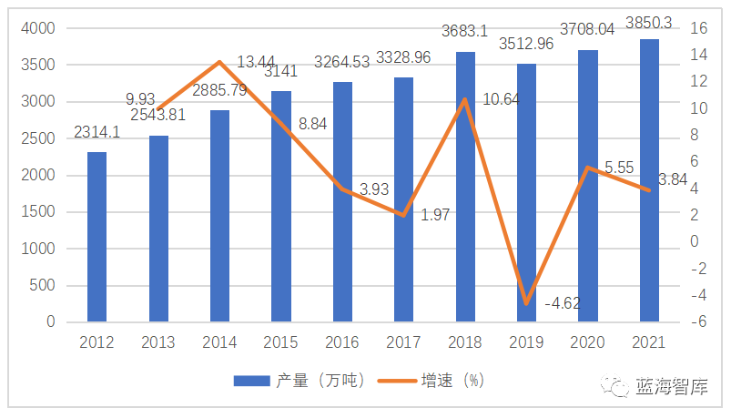 电解铝产品广泛应用于建筑、交通、电力、包装、家电等传统领域,同时随着绿色能源、环保减排的要求日益提高,在轨道交通、新能源汽车、光伏电站、风电设备等新兴产业领域也正越来越多地运用。我国电解铝产量稳定上涨,2021年中国电解铝产量为3853万吨,同比增长3.91%。2020年中国电解铝产量为3708.04万吨,同比增长5.55%。
