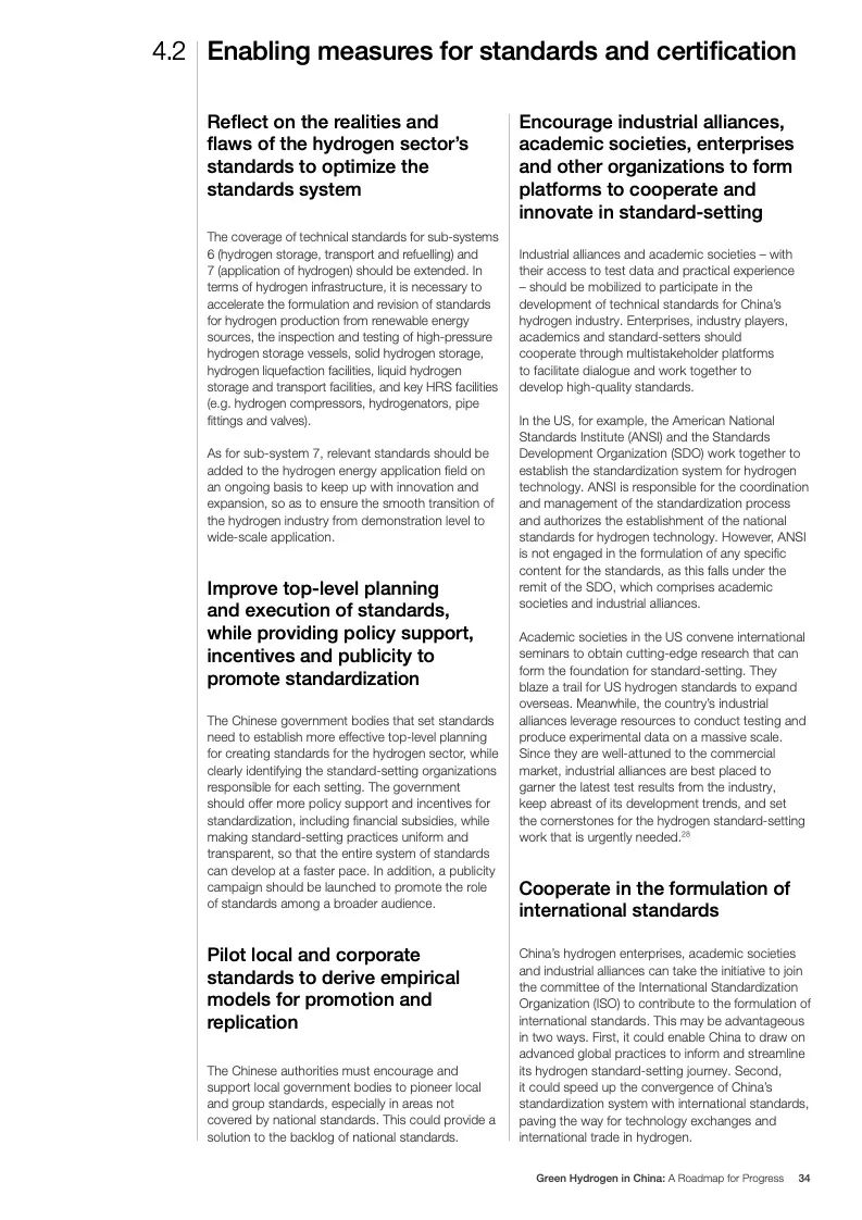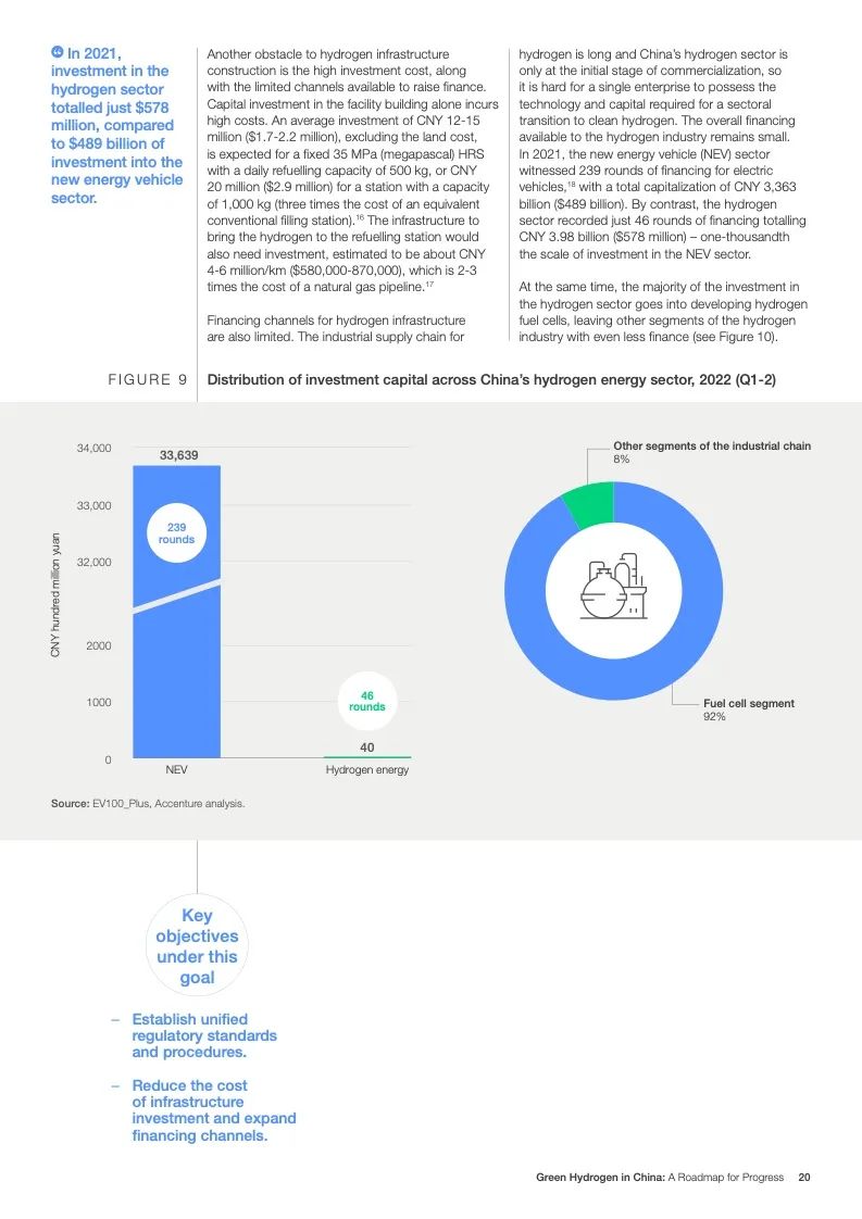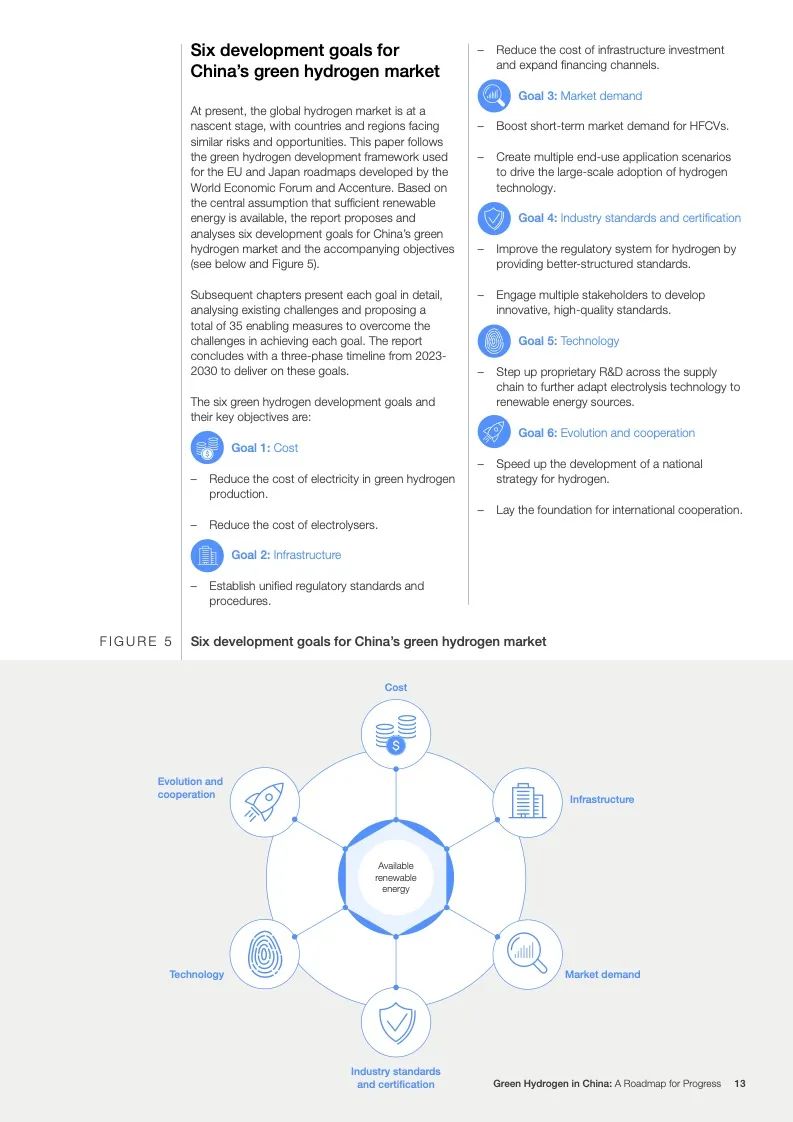 该报告由世界经济论坛与埃森哲和中国氢能联盟共同发布,指出了中国绿色氢能产业面临的挑战,明确了与成本、基础设施、市场需求、行业标准和认证、技术、发展演进与合作等相关的六大障碍和目标。为了克服这些挑战,报告列举了35项支持措施,并建议从现在起到2030年期间,分三个阶段落实这些措施。