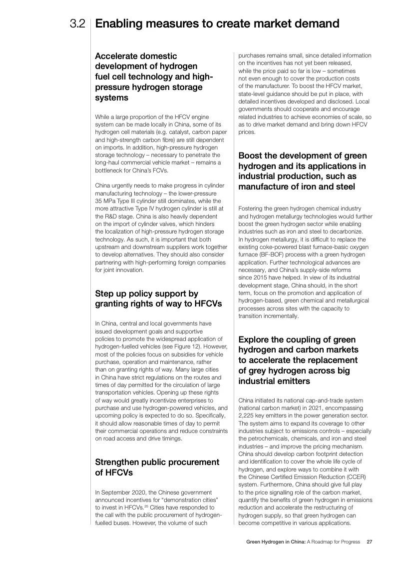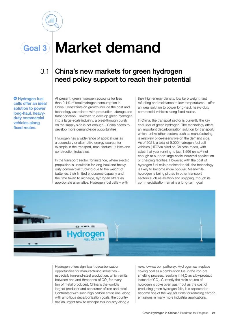 报告指出,有了强大的政策指引和激励,中国就有望实现绿色氢能技术的产业化,推动产业体系和整体经济的转型。为了实现这项新技术的规模化发展,中国需要聚焦行业、区域和全球合作。