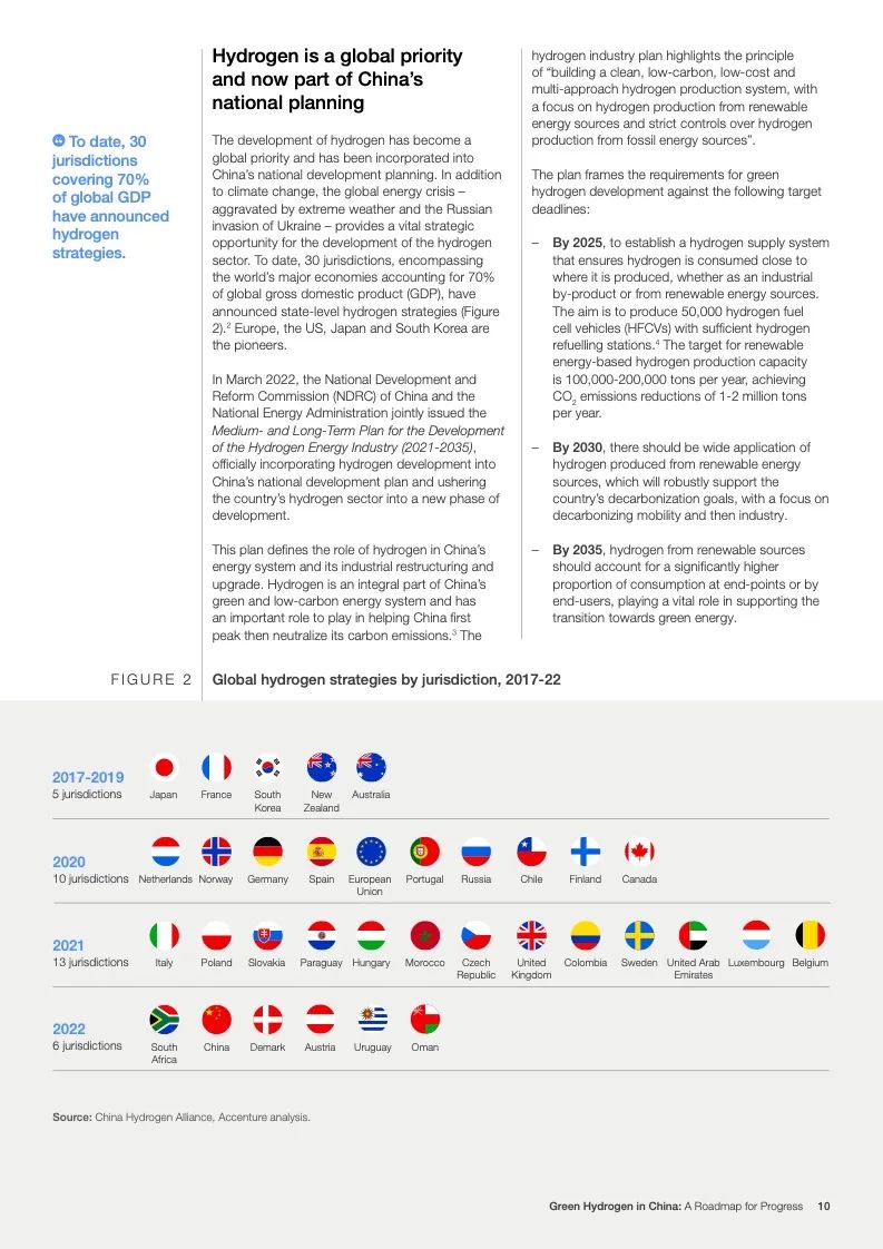 “绿色氢能市场的发展至关重要,” 埃森哲全球副总裁、大中华区主席朱虹表示。“中国的氢能企业、机构和产业平台可以通过合作和项目交流,把握良机共同促进全球氢能市场的创新和发展,积极朝着氢能经济的协同发展迈进,有助于实现经济、社会、能源体系和安全等各方效益。”