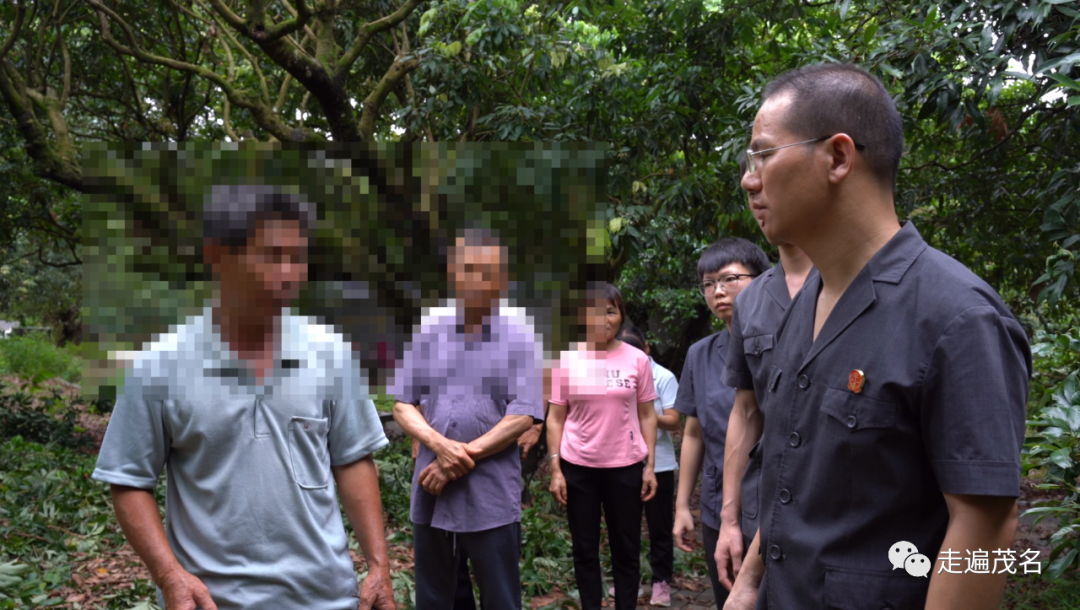 高州法院金山法庭干警在根子镇开展“平安大走访”活动时,果农们焦急地向干警们反映情况。