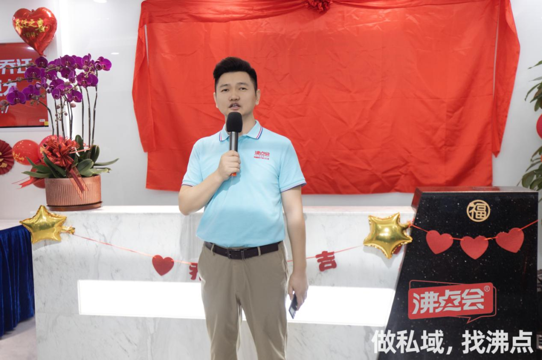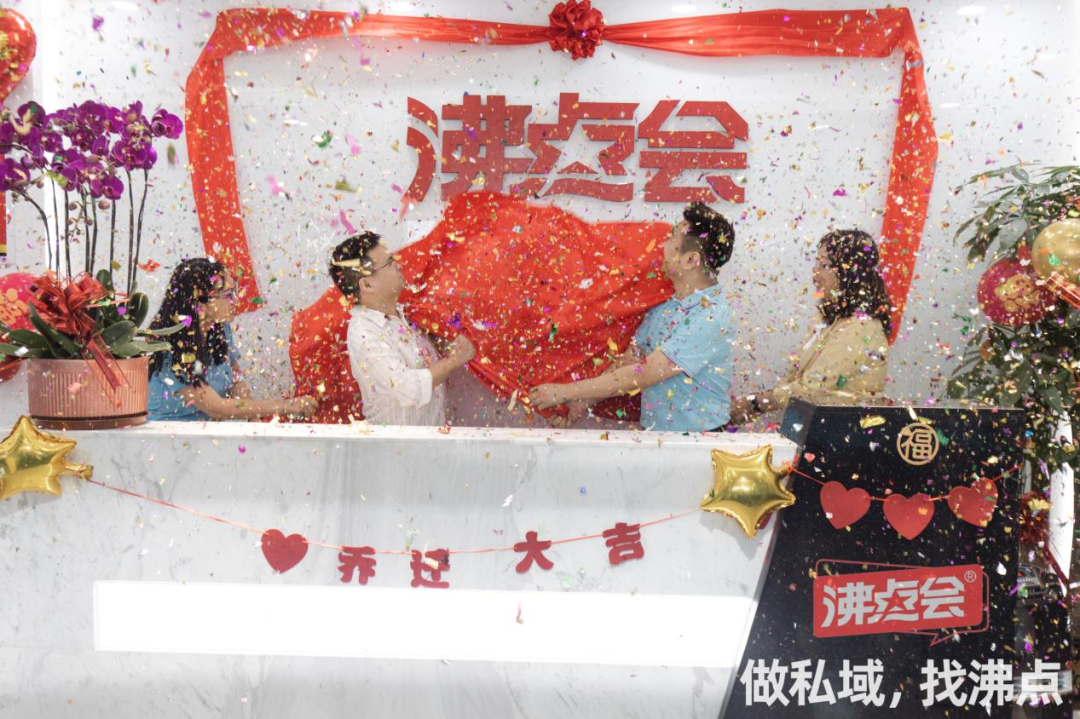 接着举行了沸点会展乔迁揭牌仪式,沸点会创始人勇哥,沸点会展总经理姜山,沸点天下执行总裁妮妮,沸点会展合伙人张漫,共同揭牌,预示着沸点会展红红火火,迈向新的未来。