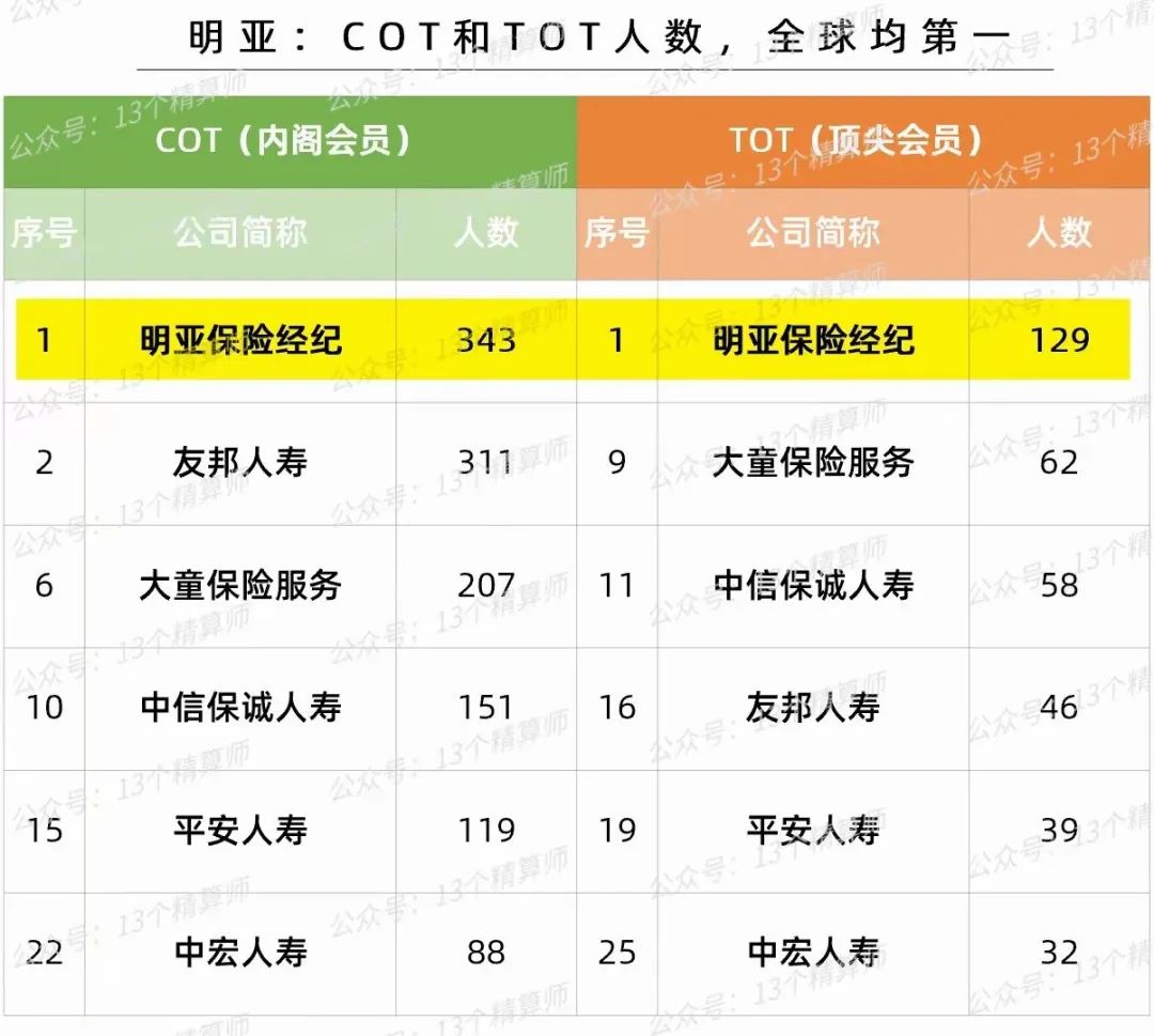 明亚全国在册人力 2万人,MDRT 2363人,