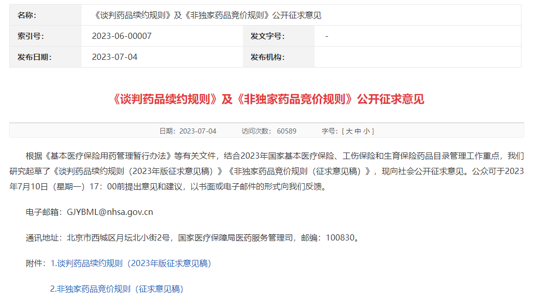 7月4日,国家医保局发布《谈判药品续约规则(2023年版征求意见稿)》《非独家药品竞价规则(征求意见稿)》两份文件,向社会公开征求意见。和2022年相比,今年谈判药品续约规则主要在以下几方面进行了更新: