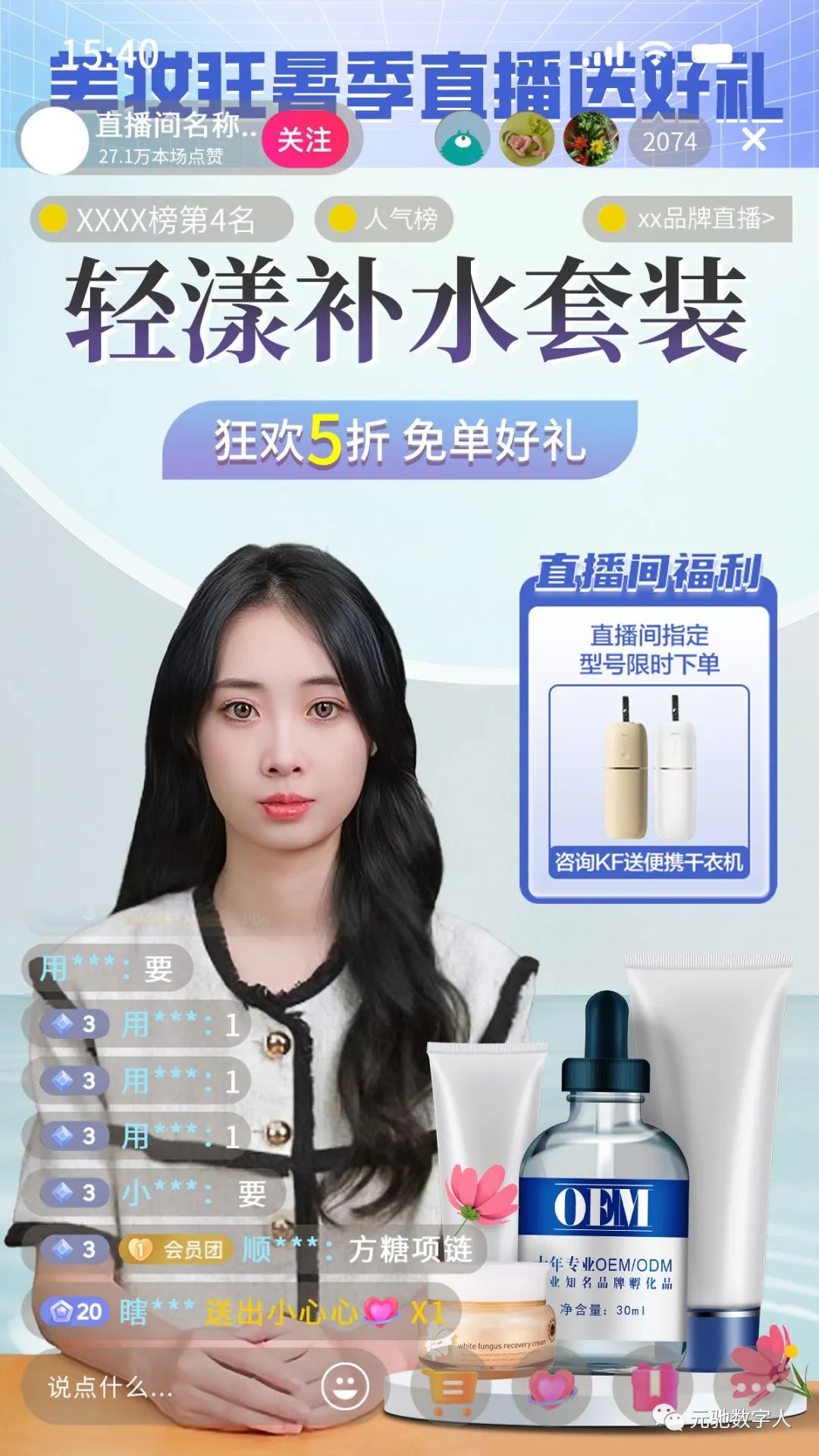 例如以下图片,都是中小企业定制的用来直播带货的数字人: