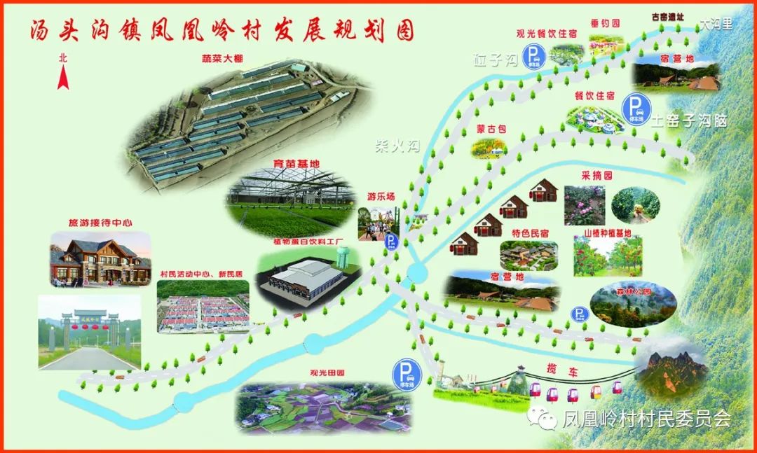 隆化县汤头沟镇凤凰岭村,距县城10公里,距康熙北巡公园4公里,下辖8个自然村,11个居民组,共有359户、899口人。凤凰岭村有耕地1850亩,林地2.4万亩,是以独特的山地风光“笔架山”为依托,以绿色生态休闲和文旅产业融合发展为主题的生态康养型村落。