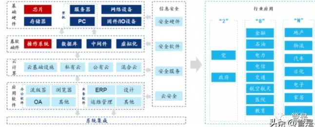 大家都知道信创这个概念,可是它是什么?为什么要重视及发展,具体发展到什么程度了?还要做什么?基础软件是信息安全的主要保障,是一个国家信息化建设的基石,然而,长期以来,基础软件一直是中国软件服务业发展的软肋。虽然改革开放30年来,国内基础软件取得了显著的成就,但仍然面临许多问题和挑战。很多基础软件企业缺乏资金做后续开发,整体规模小,实力弱,技术研发能力不强。与国际同类厂商相比差距明显,很多关键技术仍掌握在西方发达国家手中。因此,如何打破寡头垄断主导的产业生态系统,突破国际巨头建立的技术和市场壁垒,推动中国基础软件的快速产业化和市场化,一直是产业发展的难题。1、2006 年启动核高基项目,该项目与载人航天、探月工程并列为 16 个重大科技专项之一;核高基为核心电子元器件、高端通用芯片及基础软件产品,开启行业信创,将基础软件替代作为关键环节2、2009 年,阿里巴巴提出“去 IOE”,即在核心系统中,不再使用 IBM 的小型机、甲骨文 Oracle 的数据库、EMC 的存储;3、2014 年,中央启动南风一号计划一期工程,成立了自主可控联盟;从国产服务器、国产CPU、国产操作系统、国产中间件、国产数据库到国产应用软件全部实现自主可控,联盟成员从最初的8家扩大到15家。4、2018 年,全国网络安全和信息化工作会议指出“抓自主可控产业体系建设”,“安可”被提出;5、2019 年,正式提出发展信创产业;
