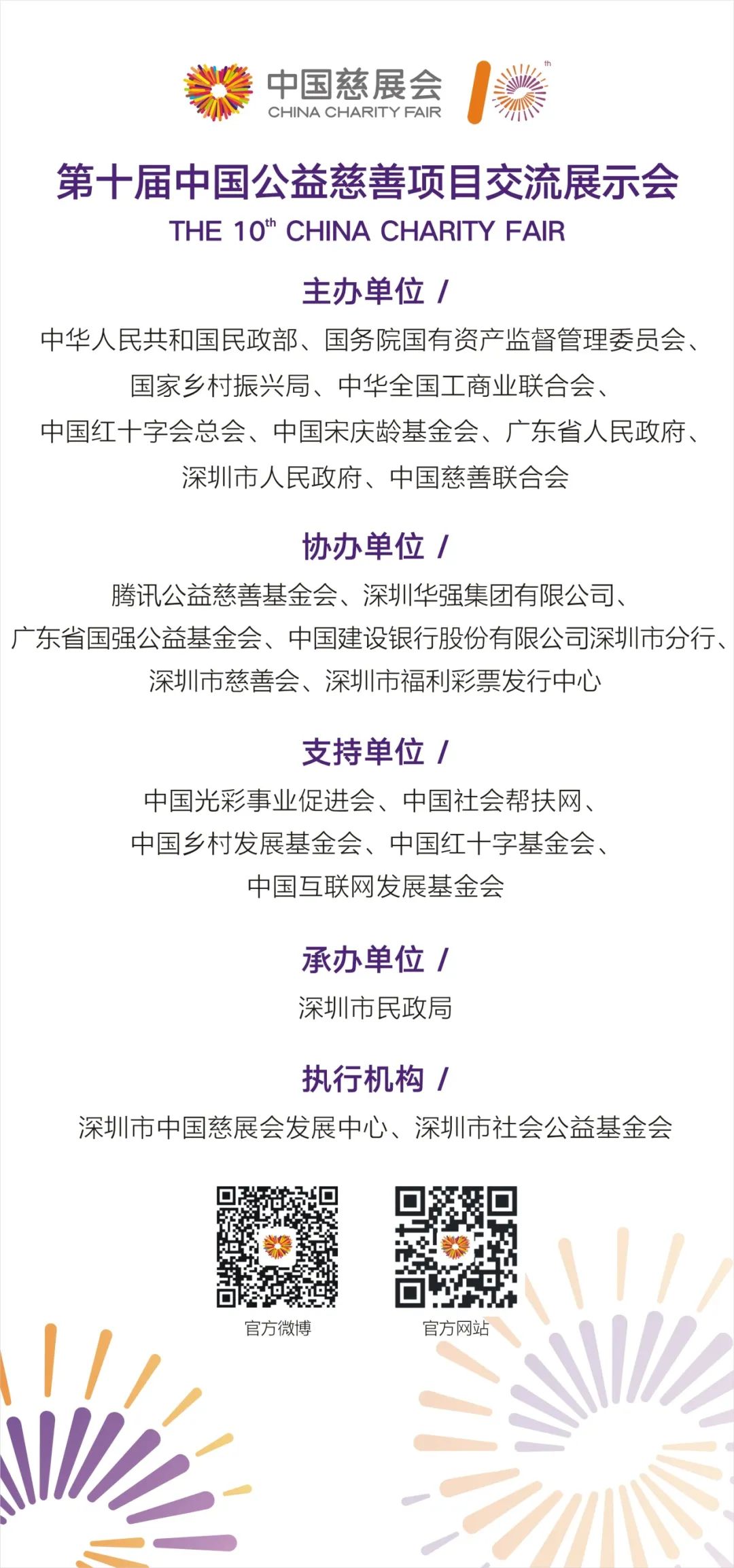 中国公益慈善项目交流展示会(以下简称慈展会)由民政部、国务院国资委、国家乡村振兴局、全国工商联、中国红十字会总会、中国宋庆龄基金会、广东省人民政府、深圳市人民政府和中国慈善联合会共同主办,是目前国内唯一的国家级、综合性、国际化的慈善行业展会,已经成功举办九届。第十届慈展会将于2023年9月在广东省深圳市举办。为做好慈展会各项工作,现就有关事宜通知如下: