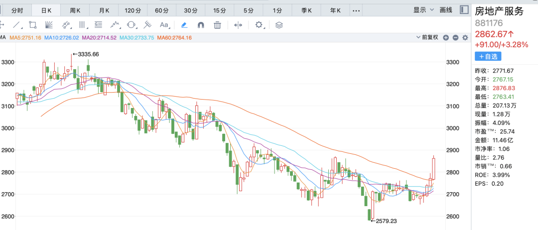房地产服务昨日位于涨幅榜第四,连续 4 日上涨。