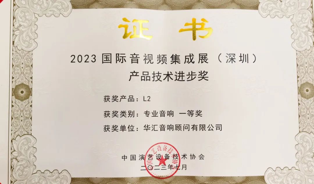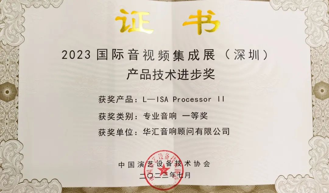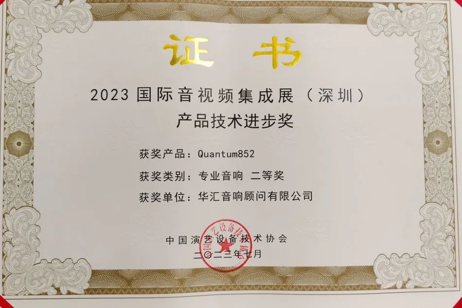 其中,华汇音响顾问有限公司在2023国际音视频智慧集成展(深圳)参展商产品技术进步奖中获得多个奖项,分别是:L-Acoustics L2和L-ISA Processor II荣获一等奖、Quantum 852荣获二等奖。