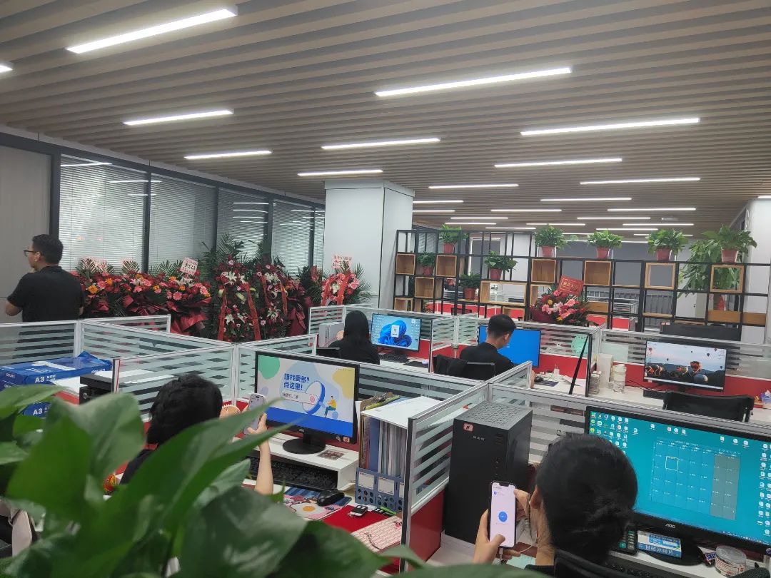 公司上下布置的分外喜庆,花团锦簇、彩带飞扬,处处呈现出生机勃勃的新气象。全体企阳人共同见证这一历史性时刻。