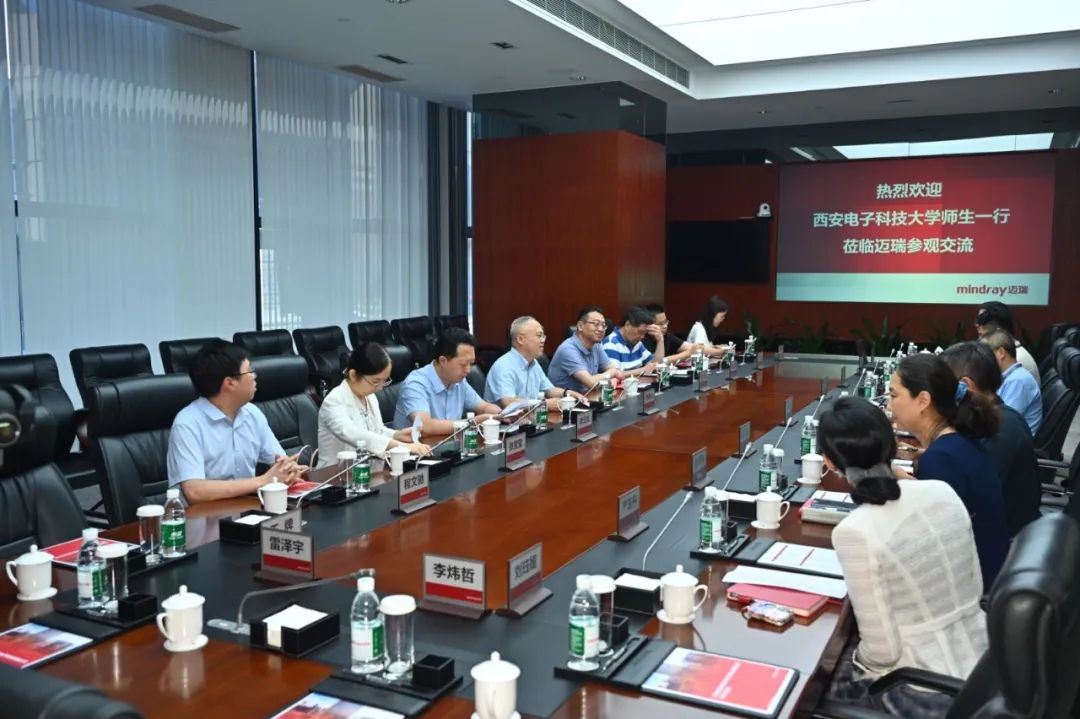 下午,实践队一行来到迈瑞医疗国际股份有限公司。迈瑞公司常务副总裁、西电校友郭艳美,产品系统技术总监陈大兵等接待了实践队一行并介绍了医疗行业的发展状况和校企合作开展情况,公司在职校友分享了在迈瑞的学习和工作体会。魏峻表示学院会进一步加强与龙头企业的紧密合作,为企业输送更多拔尖创新人才。李云松介绍了学院的整体情况、师资力量和科研进展和毕业生择业趋势。双方就加强校企互动、向企业输送更多人才展开讨论。迈瑞为实践队同学们组织了在职校友交流会,并结合同学们的专业详细介绍了在迈瑞可能从事岗位及职责,同学们表示收获颇丰、感触良多。