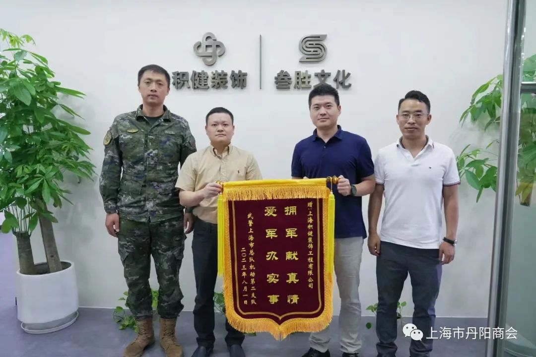 7月31日上午,武警上海总队机动第二支队、嘉定退役军人事务局赴上海积健装饰工程有限公司赠送锦旗,向积健装饰公司在部队建设上的大力支持表示感谢!