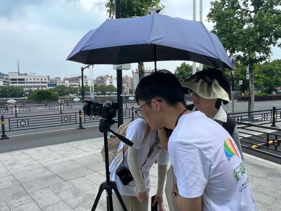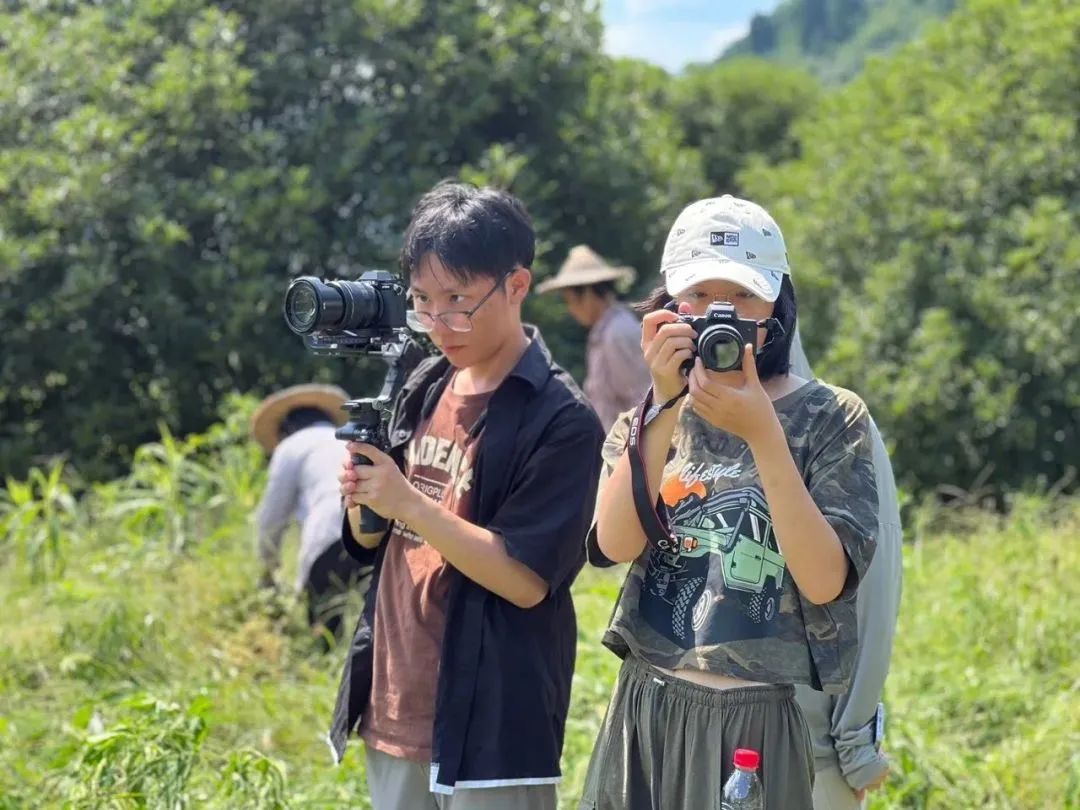在开化街头,实践团摄制开化旅游宣传片《印象开化》,以开化的特色生态、根雕、茶叶、美食为题材,以年轻化的视角分享开化独有的美丽风光。