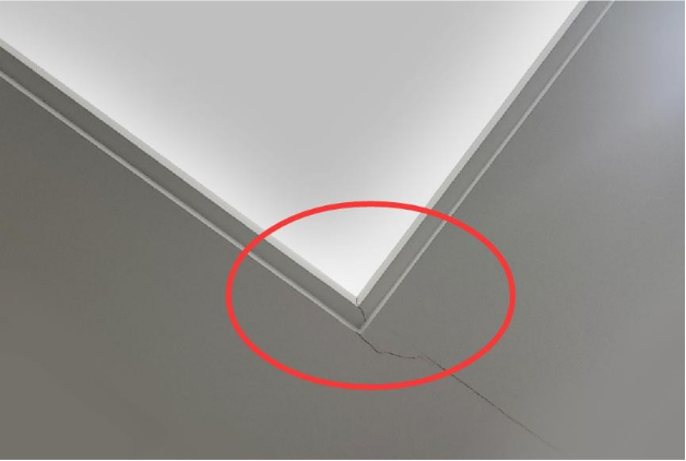 1)吊顶转角局部下坠变形开裂