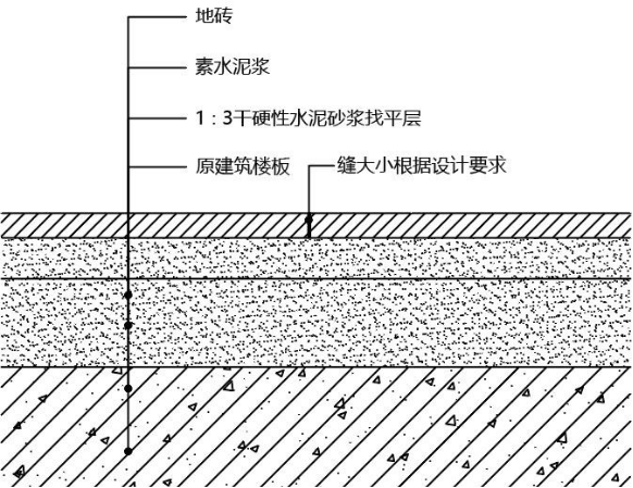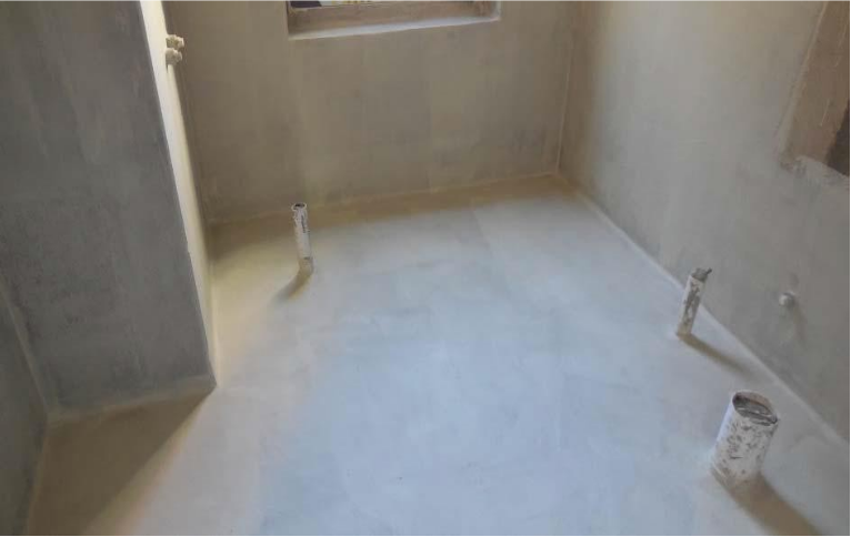 ① 基层清理:将基层表面的尘土、沙粒、砂浆、硬块等物清理干净,对所破坏地面处进行找平修补;地面、墙面阴角处做好圆弧形R角;