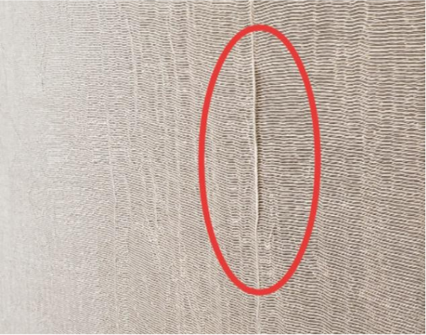 ② 壁纸过墙面阳角长度少于 200mm,难以克服壁纸的表面张力,导致翘边。