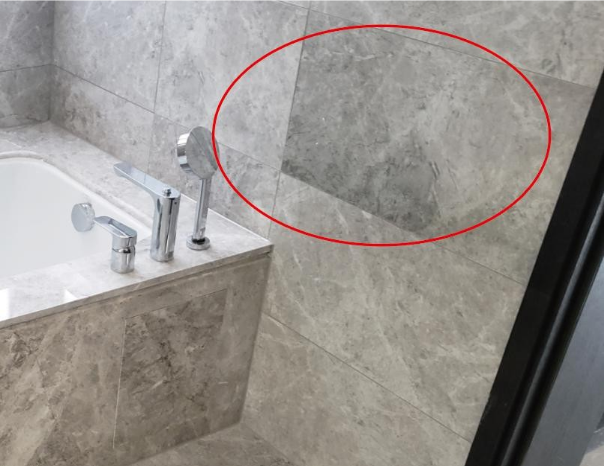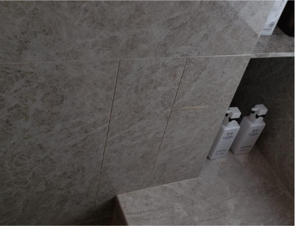 2)墙面石材色差明显