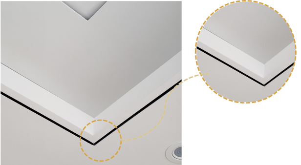 ③ 天花灯槽内侧板下口应开U型槽,并与副龙骨做平,内侧板背面再用挂件固定;
