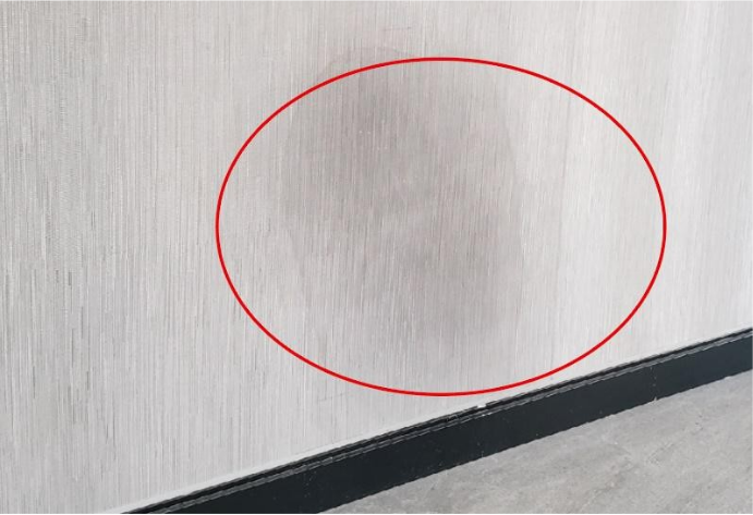 2)墙面返潮,壁纸发霉,出现花斑