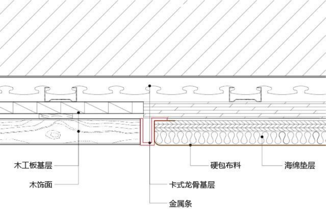 2)木饰面与硬包收口加不锈钢条做法