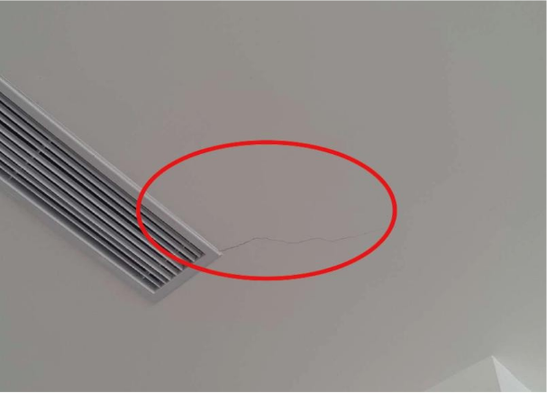 ③ 顶面进行封板隐蔽时,未对龙骨平整度及牢固性进行检查导致开裂;