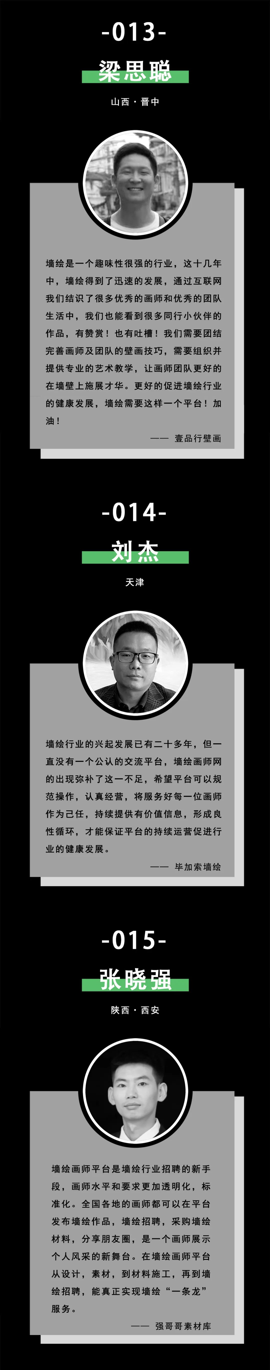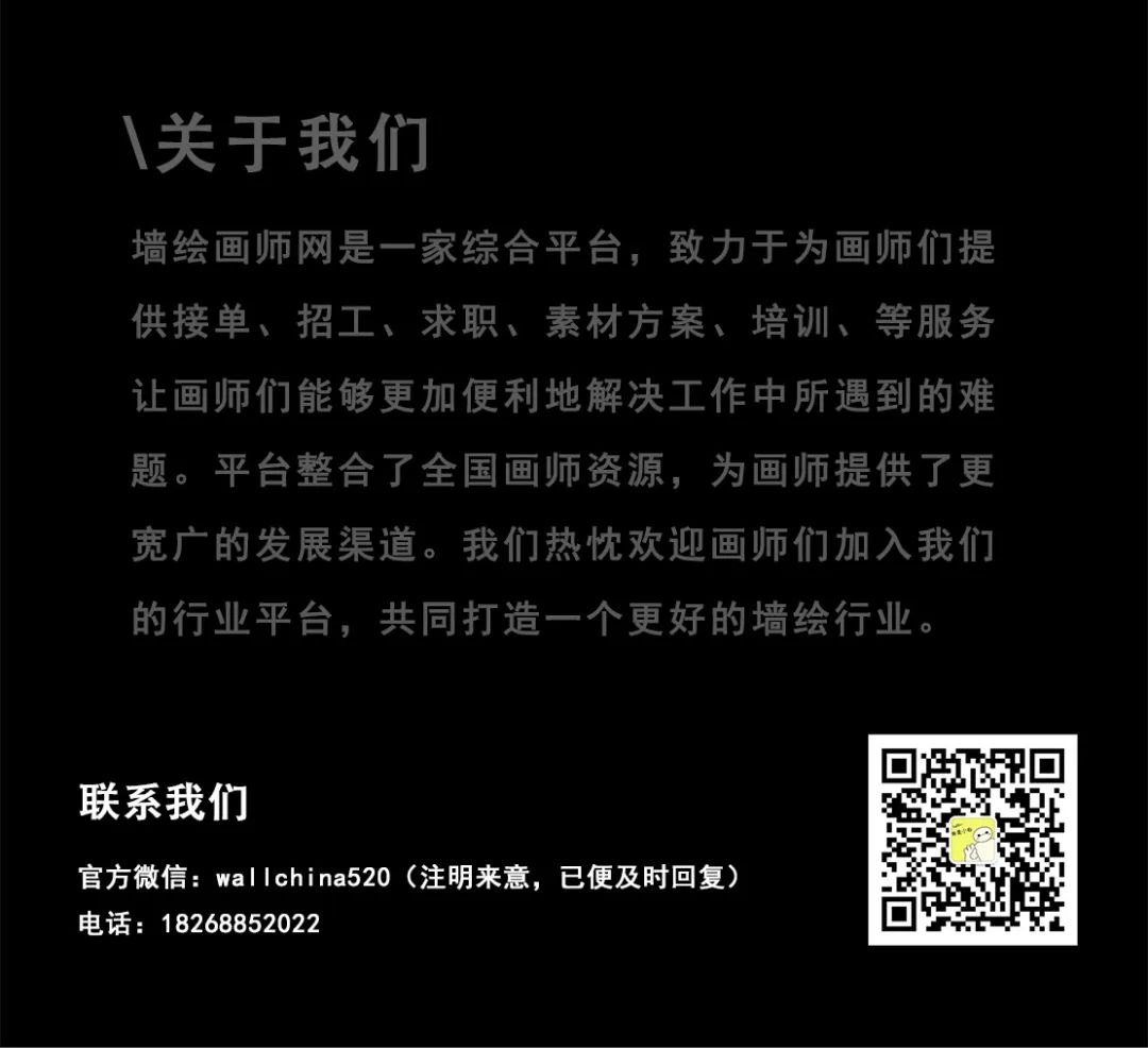 墙绘行业是一个年轻且富有潜力的行业,它拥有其他装饰手段无法替代的独特魅力,随着行业的发展,涌现了许多优秀的墙绘团队和出色的作品受到了越来越多人的认可和应用。但是,目前行业也存在一些乱象,如低门槛、价格混乱、缺乏规范标准和行业协会要求,从业人员分散且大多为独立画师。因此,我们希望通过这个平台实现资源整合,让真正从事墙绘工作的画师获得应有的价值和物质回报。大家齐心协力,把我们热爱的行业发展壮大,让更多的人了解到墙绘行业。