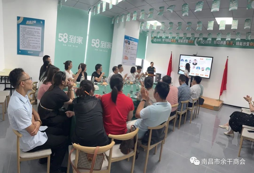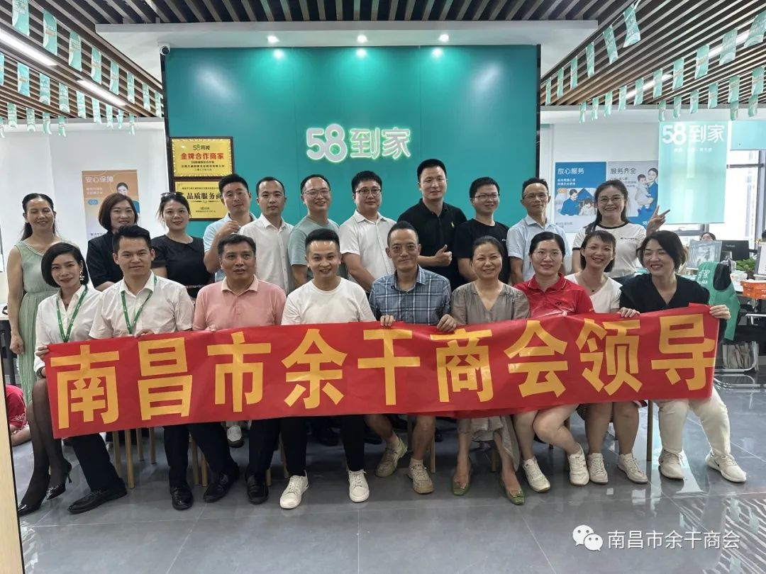 2023年8月3日,南昌市余干商会副会长吴胜昌、秘书长李占先、副秘书长曹颖磊等一行走访理事余建能单位——江西58到家总部。