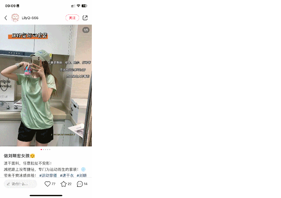 你看,它在5S内能将汗水快速吸收排出,运动完汗水不会湿漉漉地贴在皮肤上。
