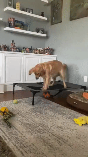 大金毛的玩具掉到床底,它想出这个办法,和二哈有渊源?