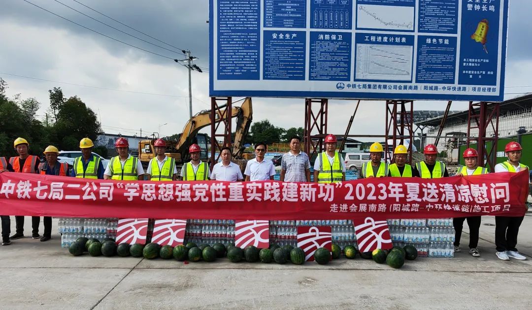 8月4日,公司总经理杨三龙到杭州会展南路项目检查调研并开展“夏送清凉”慰问活动。公司工会主席付斌、副总经理王建华陪同。