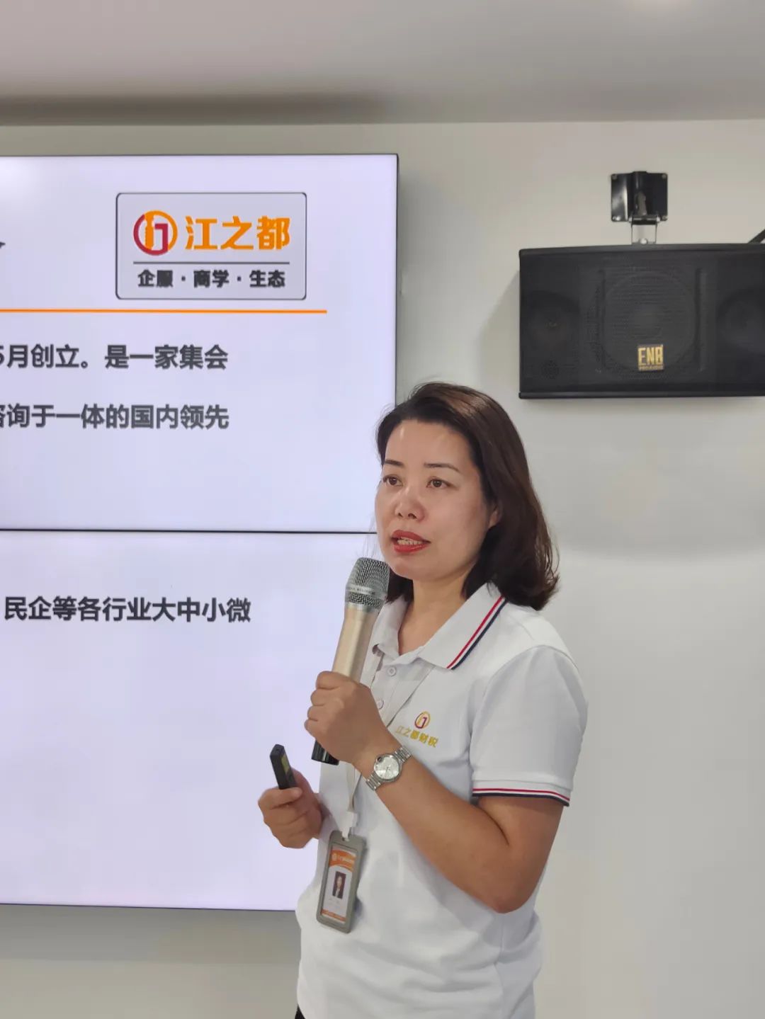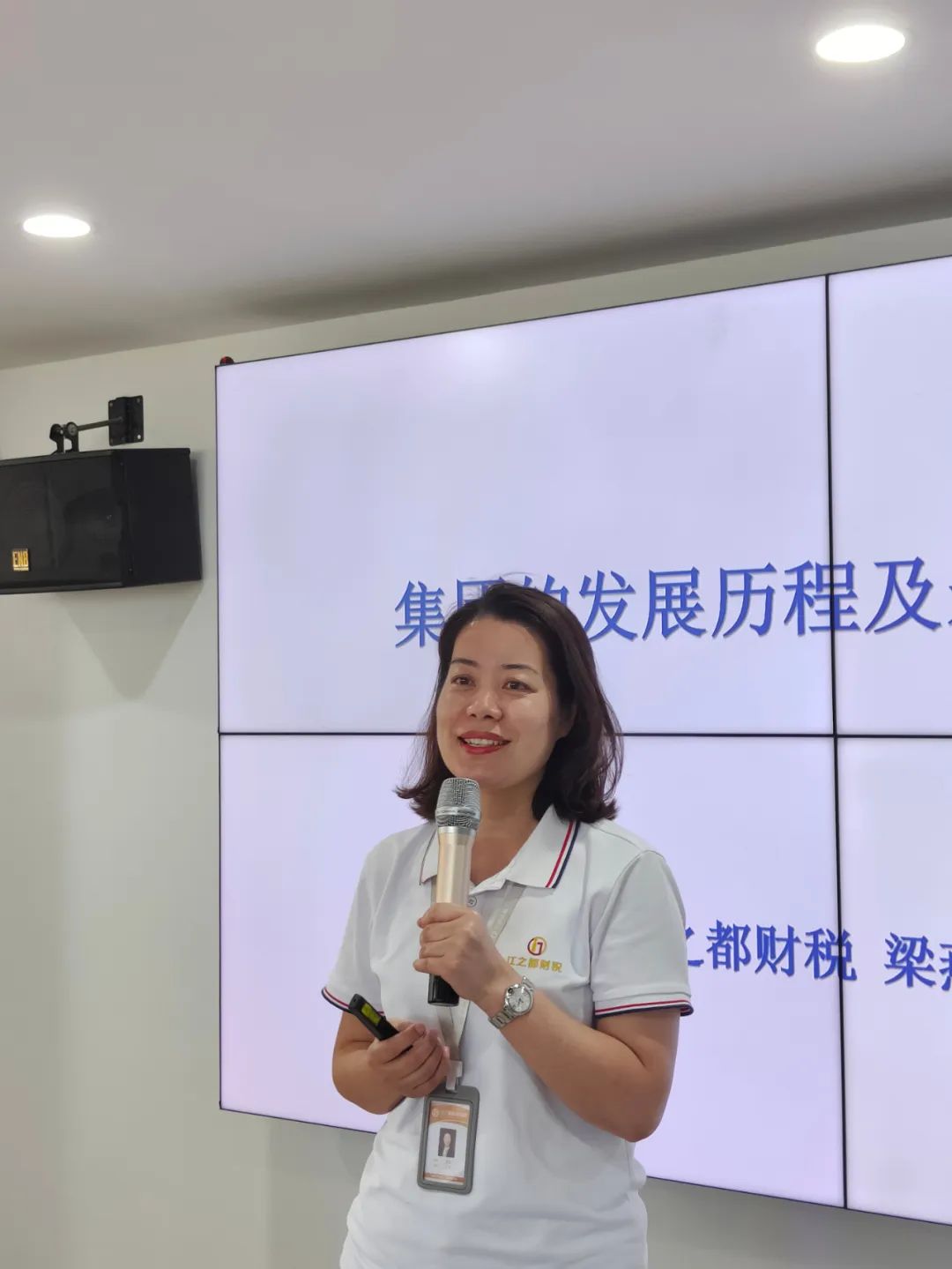 集团总裁燕姐为新员工介绍了集团发展历程以及公司产品,江之都集团自2006年成立以来,持续专注于企业财税服务与财务技术开发领域,并不断拓宽企业服务宽度,为中小企业持续降本增效。是一家集会计师事务所、税务师事务所、律师事务所、评估师事务所、工商代办、财税咨询、股权咨询、融资服务等于一体的全国性领先专业企服集团。