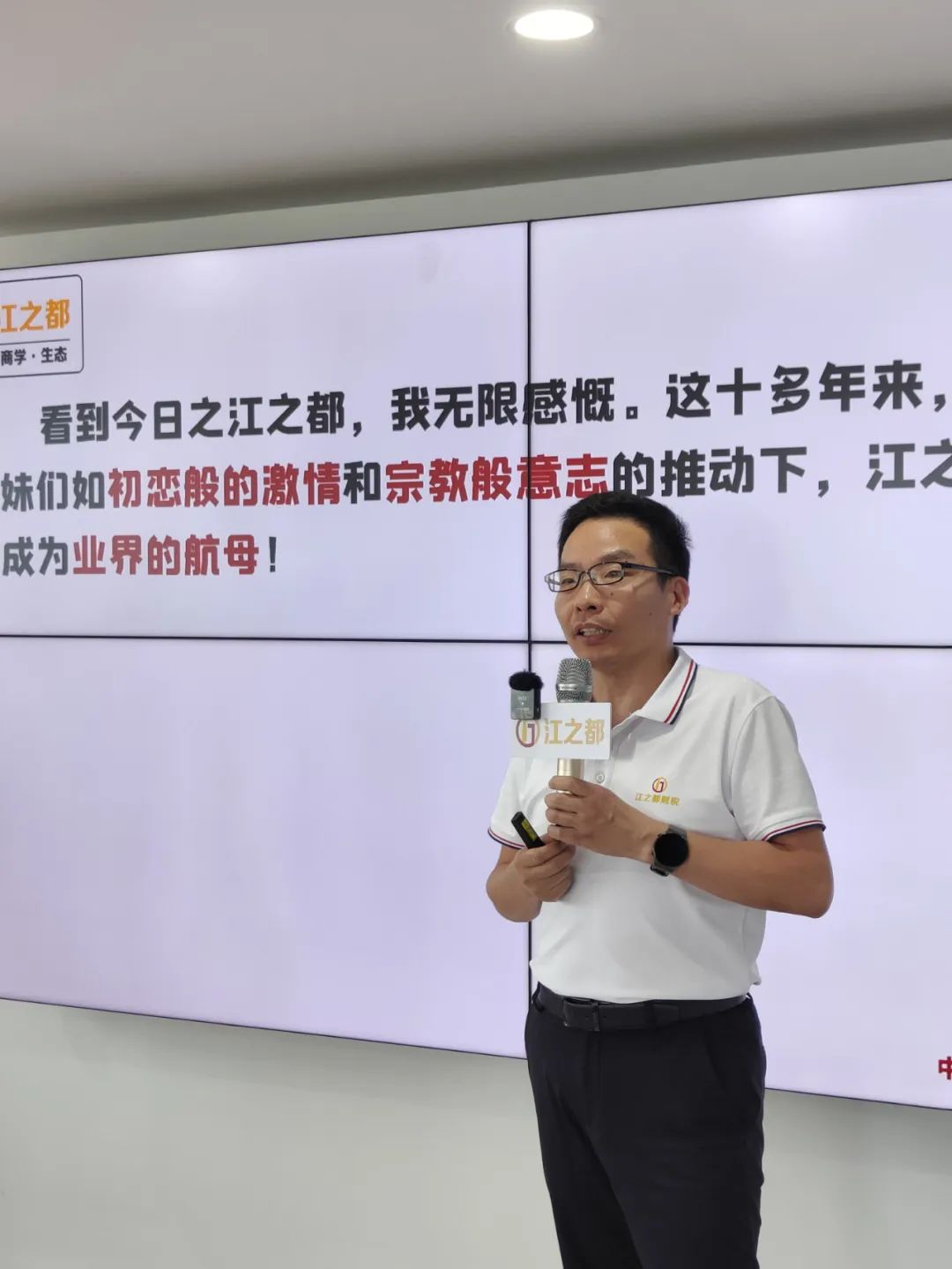 每一期的新人培训,胜哥都会亲自为小伙伴们讲公司的历史和未来规划,跟随胜哥的步伐一起走过江之都的前世今生,跟着公司的指引,让小伙伴们勇敢地在江之都大平台上踏浪前行,充满希望和能量地在江之都大平台上越走越远!