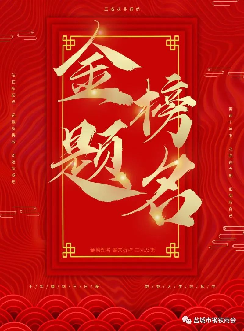 慕鸿鹄树千里高志,迎新路展万里鹏程。盐城市钢铁商会祝愿金榜题名的会员子女在高校继续迎接新的挑战,在更广阔的天空翱翔!