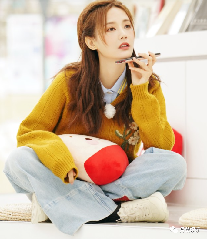 穿搭小技巧:李一桐姜黄色的V领毛衣配蓝色衬衫