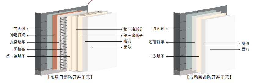 ②加入耐碱网格布作为打底,与水腻子粘合,产生强拉力,提高抗裂程度
