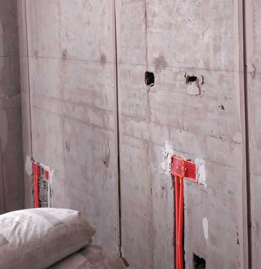 ①冲筋打点墙面找平,保障平整度及墙面美观程度