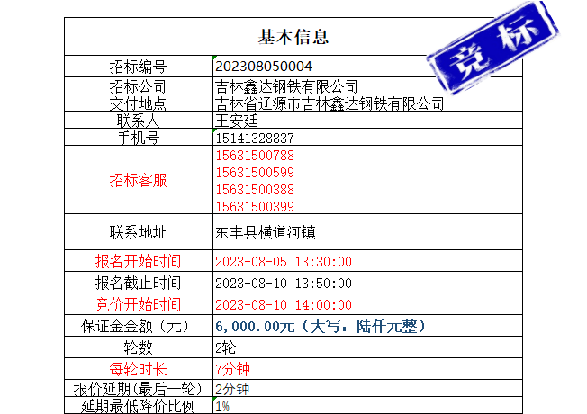 【招标公告】8月10日吉林鑫达钢铁有限公司7月冷却塔备件招标公告