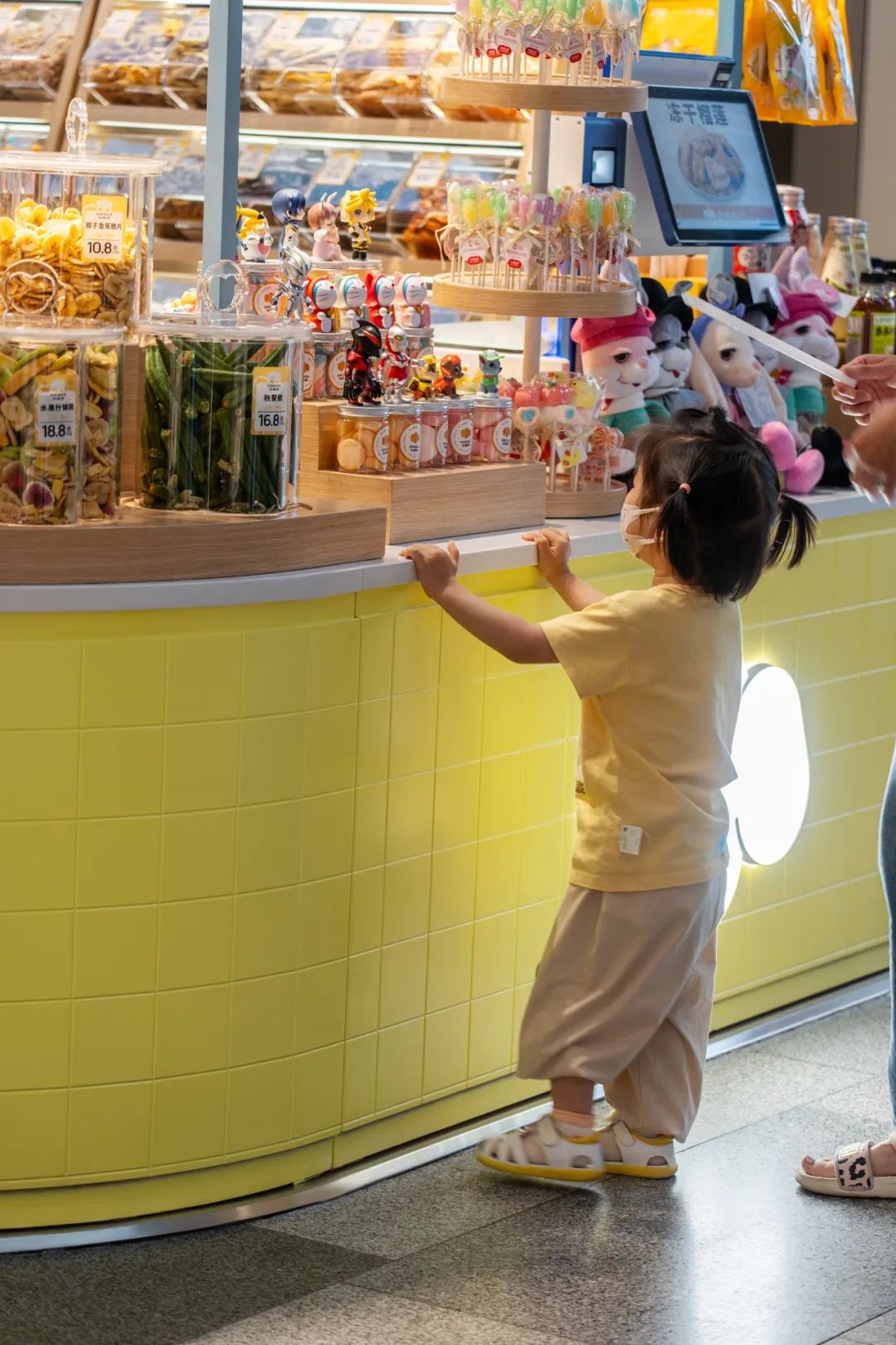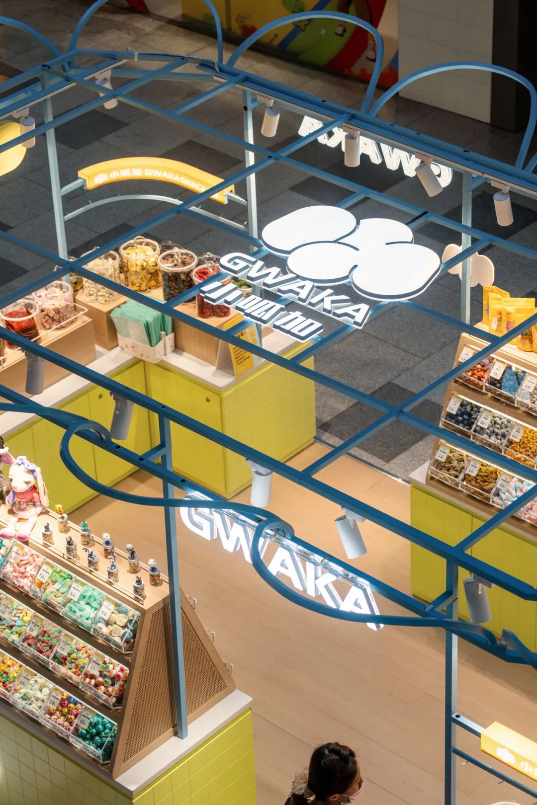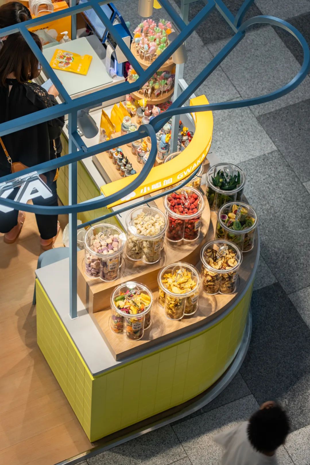 五彩缤纷的零食分区陈列,以看得见的健康、新鲜为主要目的,设计多种不同造型的透明密封容器。丰富的想象力和多重感官的快乐,满足小朋友或大人们儿时对梦幻糖果屋的幻想。