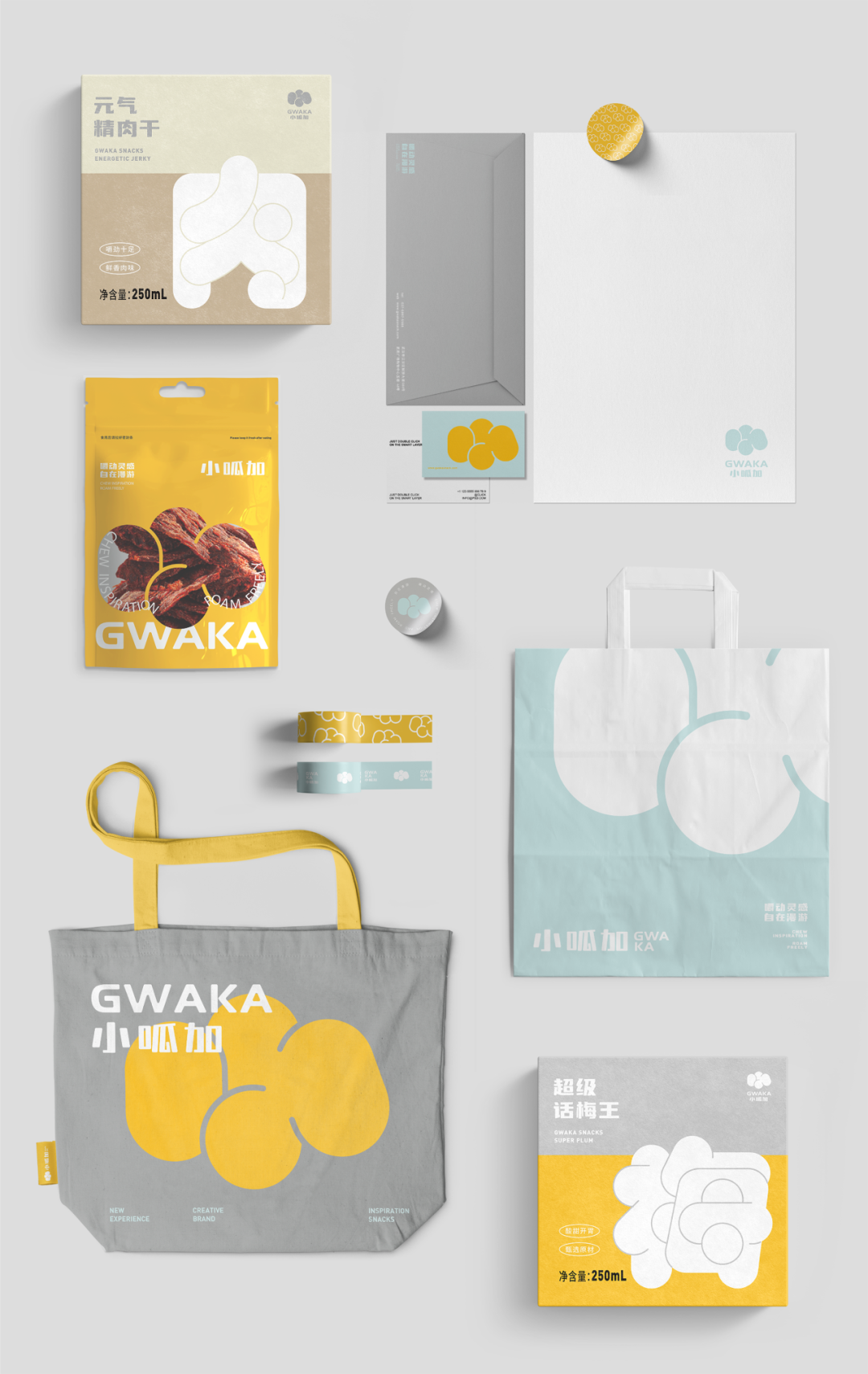 作为全新品牌,「小呱加」亟需一个完整的品牌构建。“渴望拥抱快乐和创造力”的价值观新趋势下,小呱加的品牌形象以趣味和想象力为主题,围绕零食场景,用设计美学差异化定位高端市场。