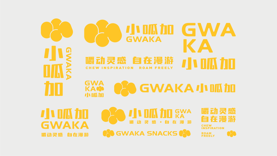 小呱加的谐音提炼出品牌英文名称“GWAKA”,简单直白、朗朗上口的发音又好似食物咀嚼时的“呱咔呱咔”,给人带来解压的愉悦感。