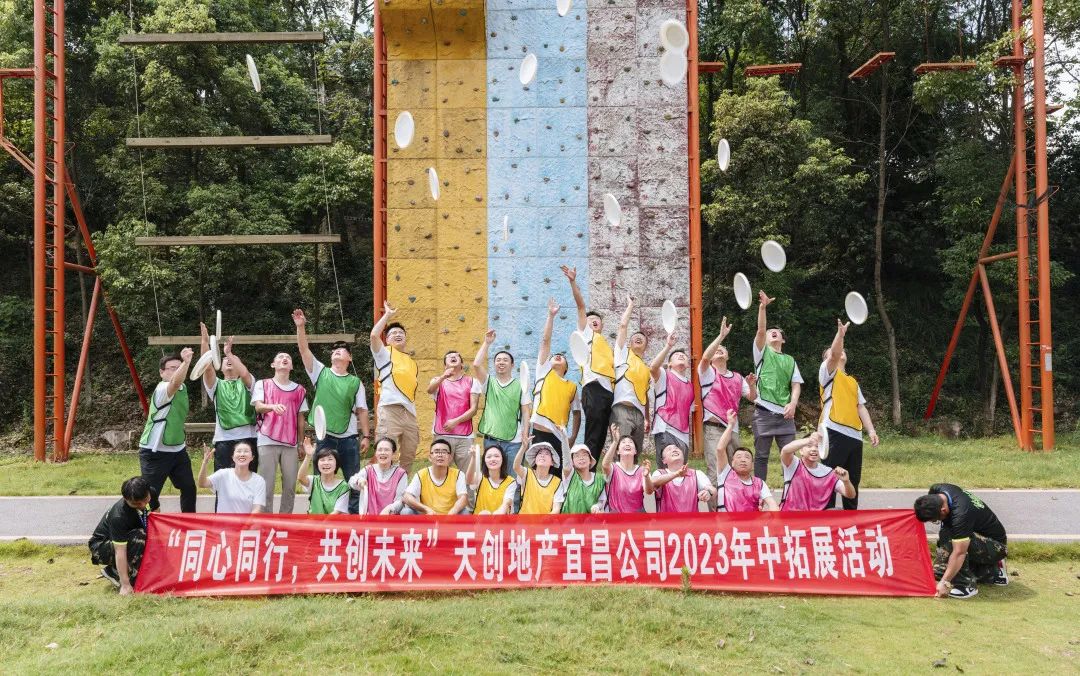 为了增进团队凝聚力,本次会议还规划了丰富多彩的户外团建内容,在依山傍水的自然美景中,大家穿上统一的纪念T恤,一同开展团建游戏,全程投入饱满的热情,相互配合协作、完成飞盘、风雨战士、毕业墙等挑战,度过了充实而有意义的一天,展现出天创地产人积极进取的精神面貌。