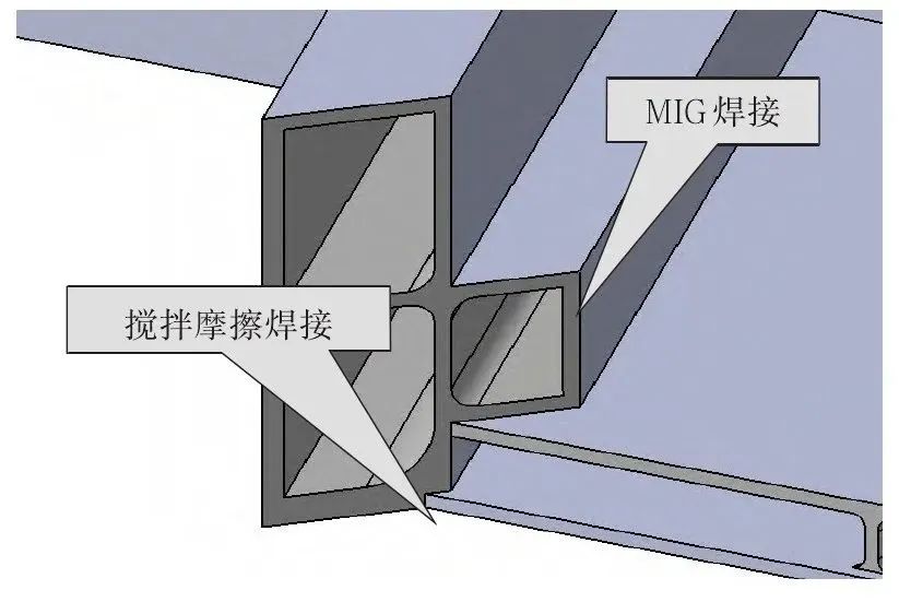 图 6 边框与底板外部搅拌摩擦焊接+内部MIG焊接