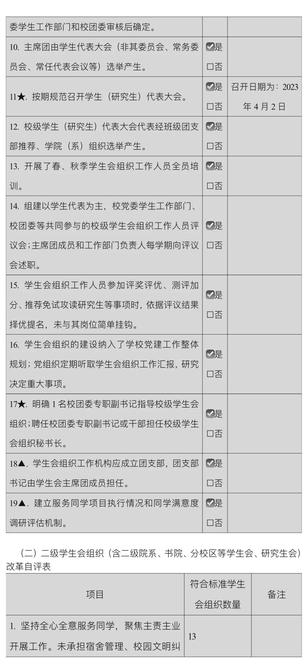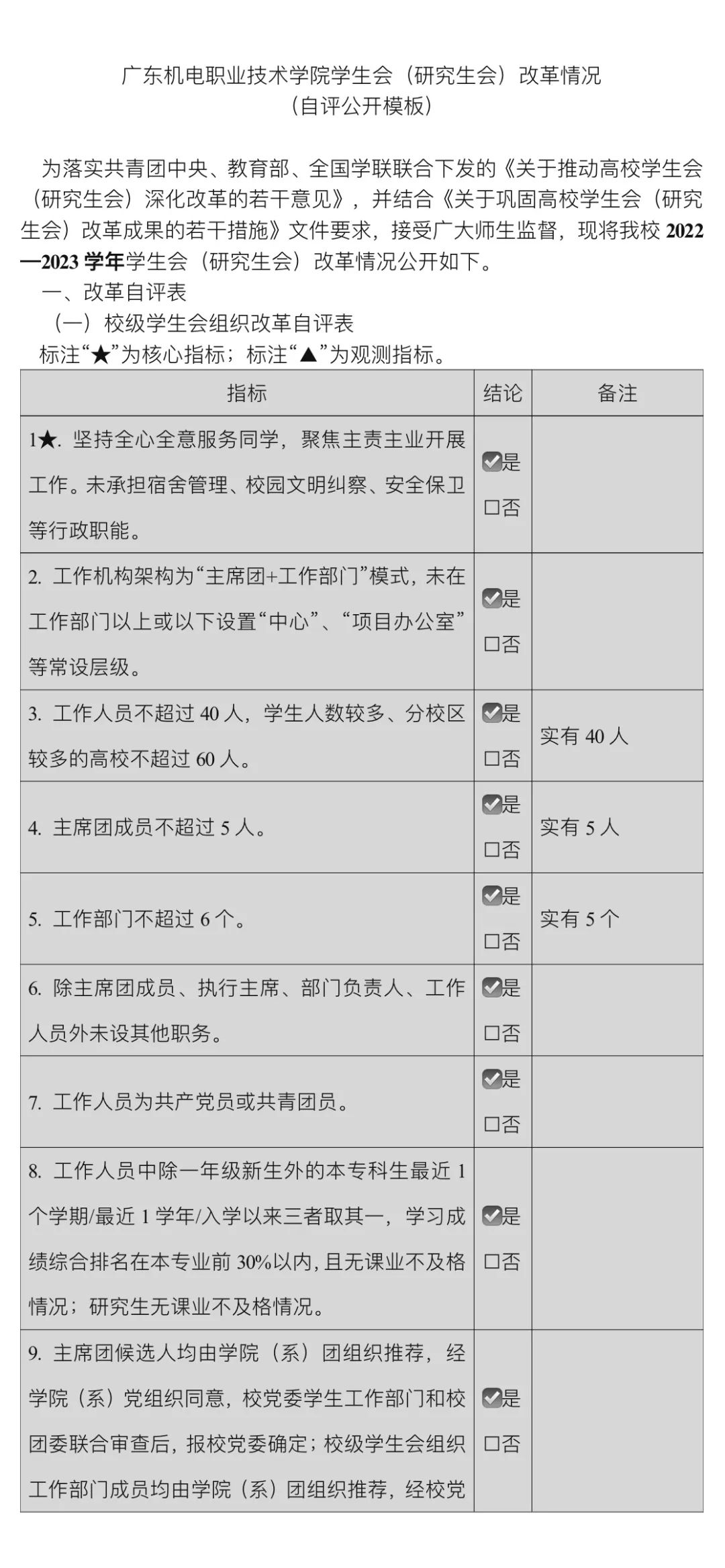 学生会改革情况公示