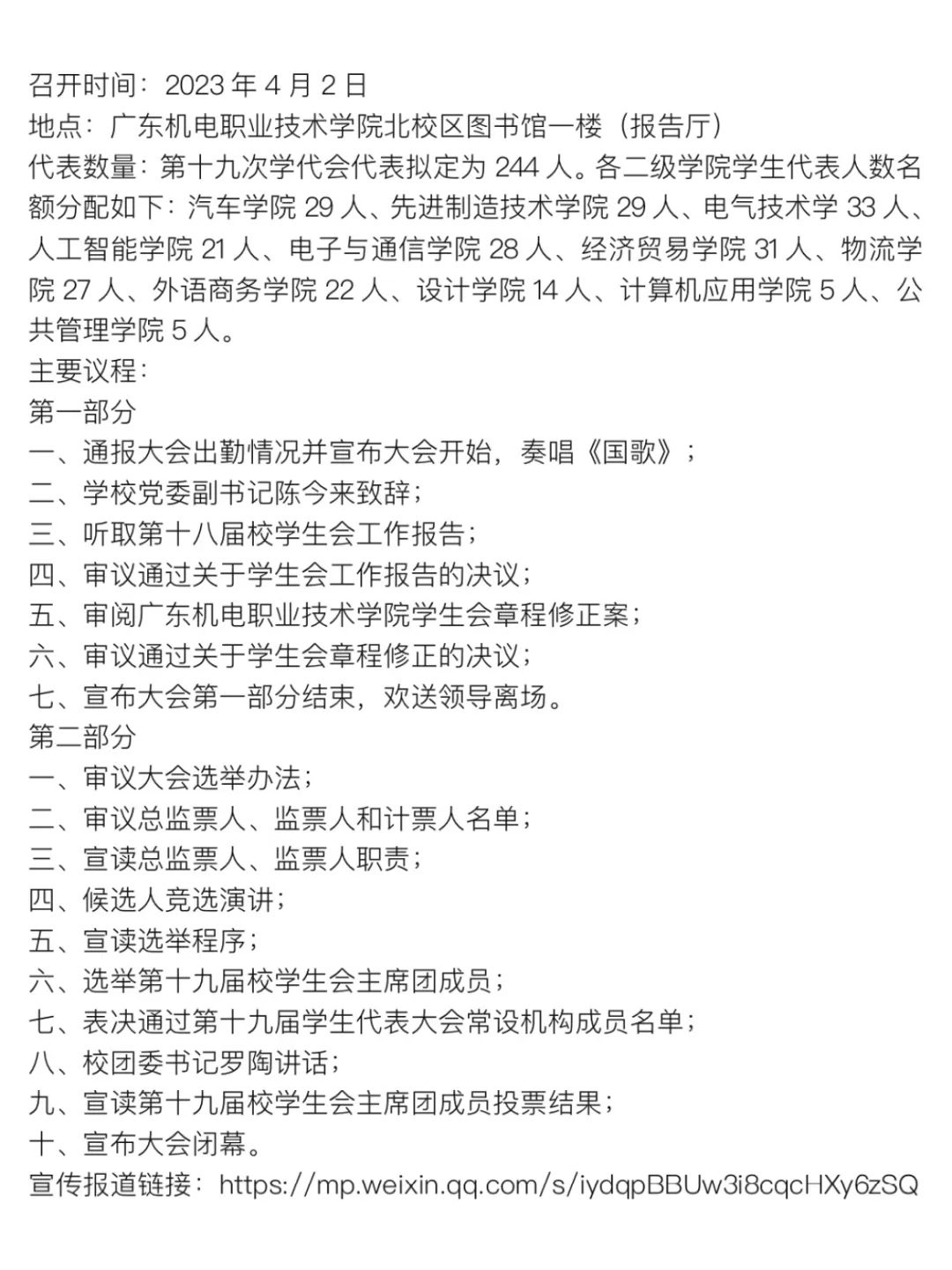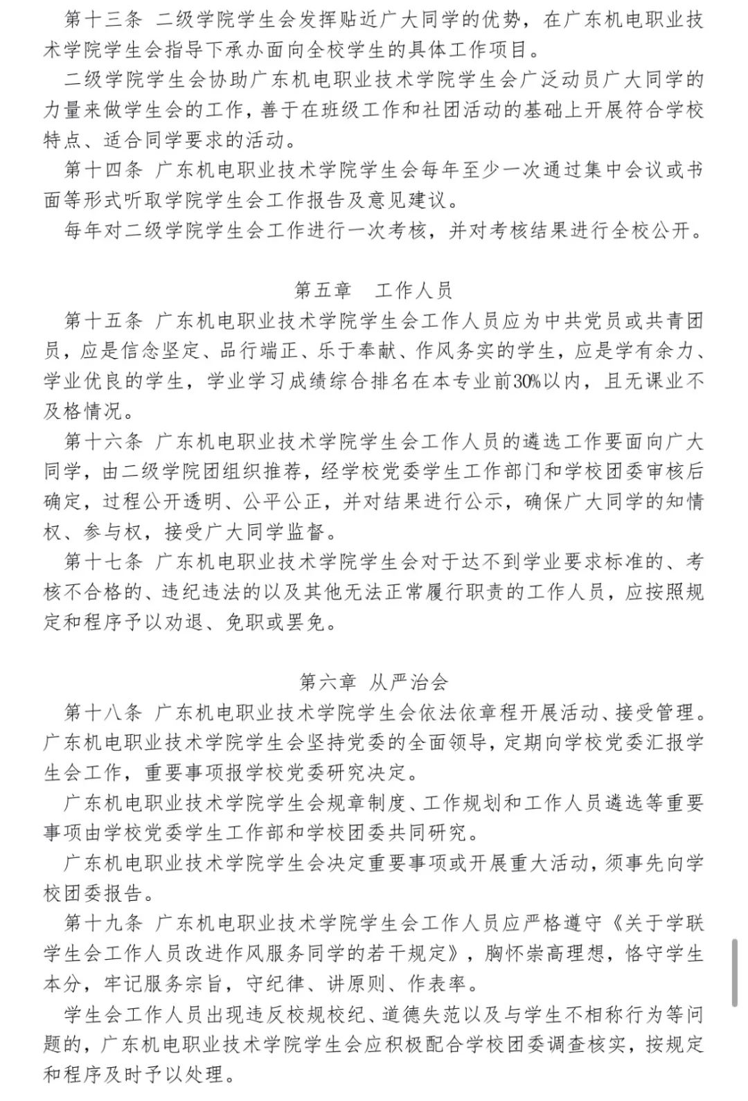 《广东机电职业技术学院学生会章程》(修订案)