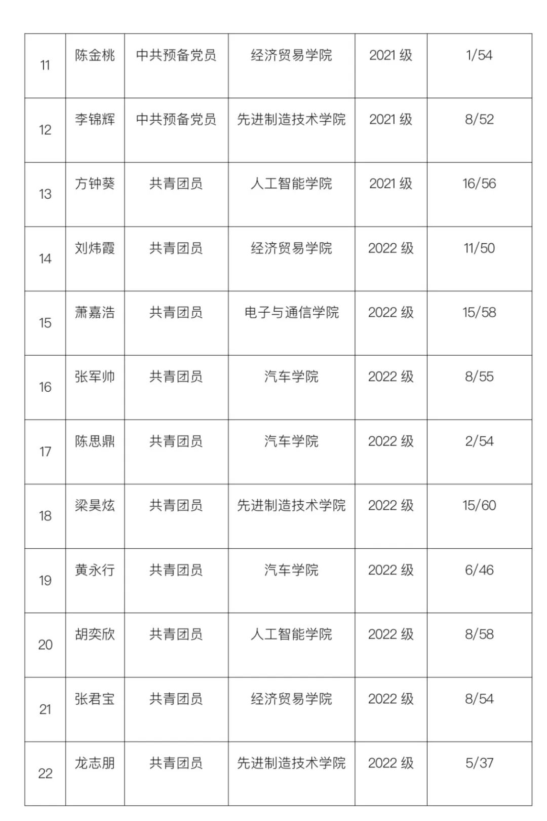 校级组织主席团成员