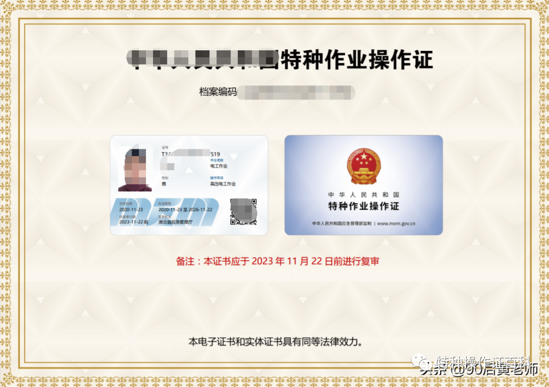 电工证一般指应急管理厅(原安监局)颁发的电工特种操作证书。一般电工操作证作为电工人员的上岗必备证书,可用于除建筑工地以外的场景。证书具有时效性,每3年进行一次复审考试,6年进行一次换证。