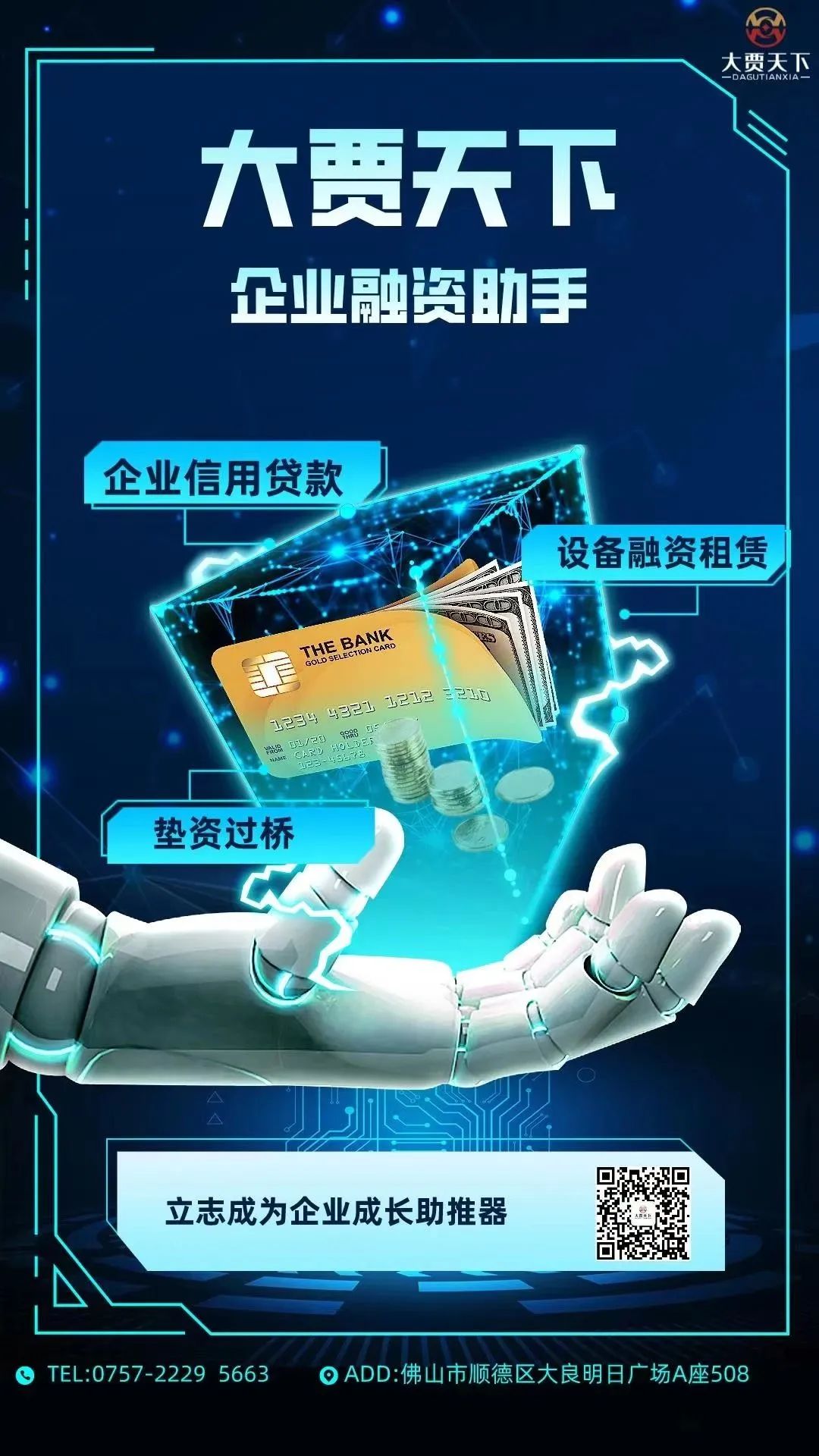 大贾天下作为助力中小微企业发展的管理机构,秉承互利共赢的工作态度,在为广大客户提供专业企业融资咨询服务,同时不断会为全网用户提供各类投融资、行业情况、法律法规等最新资讯信息。