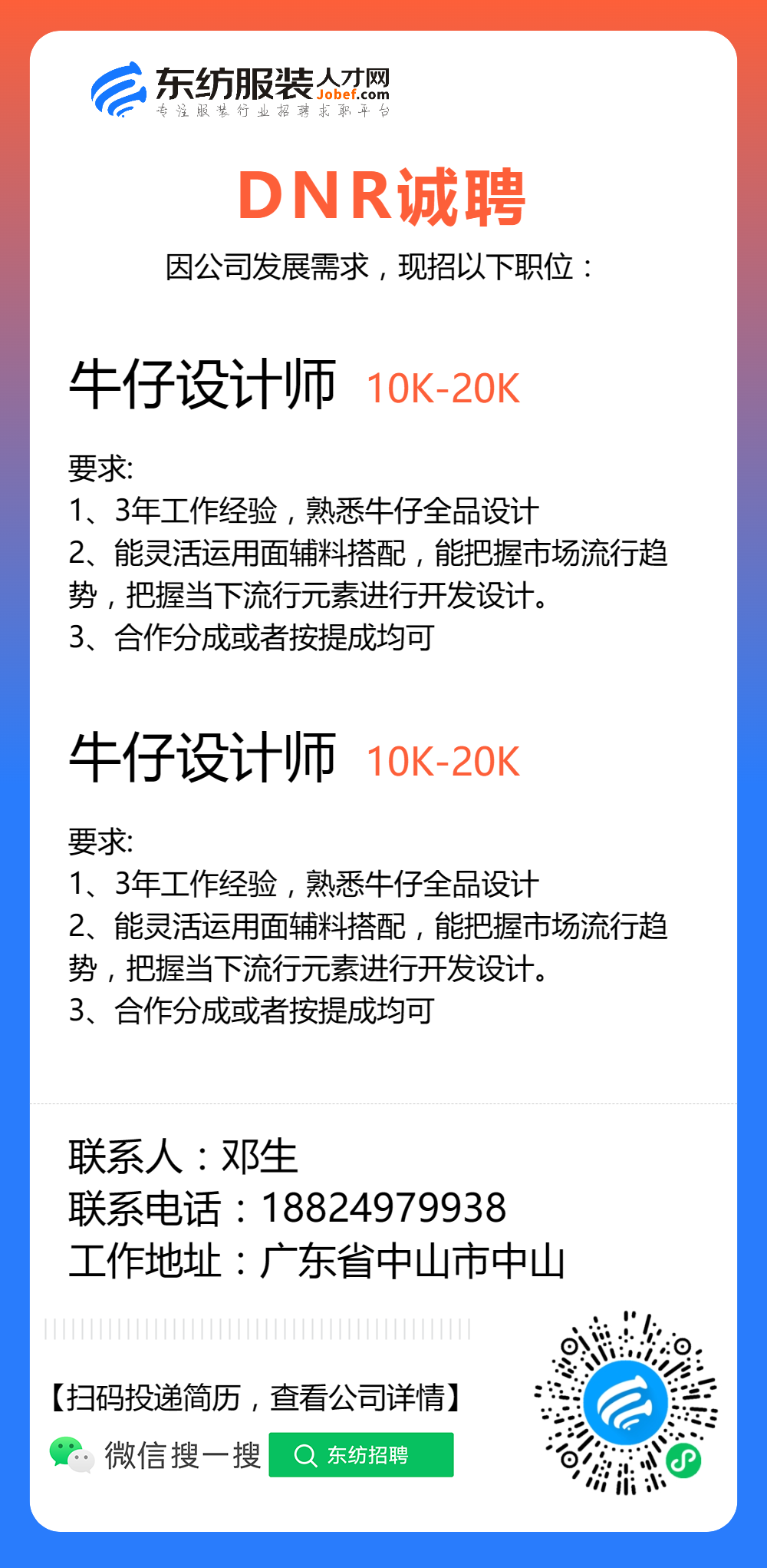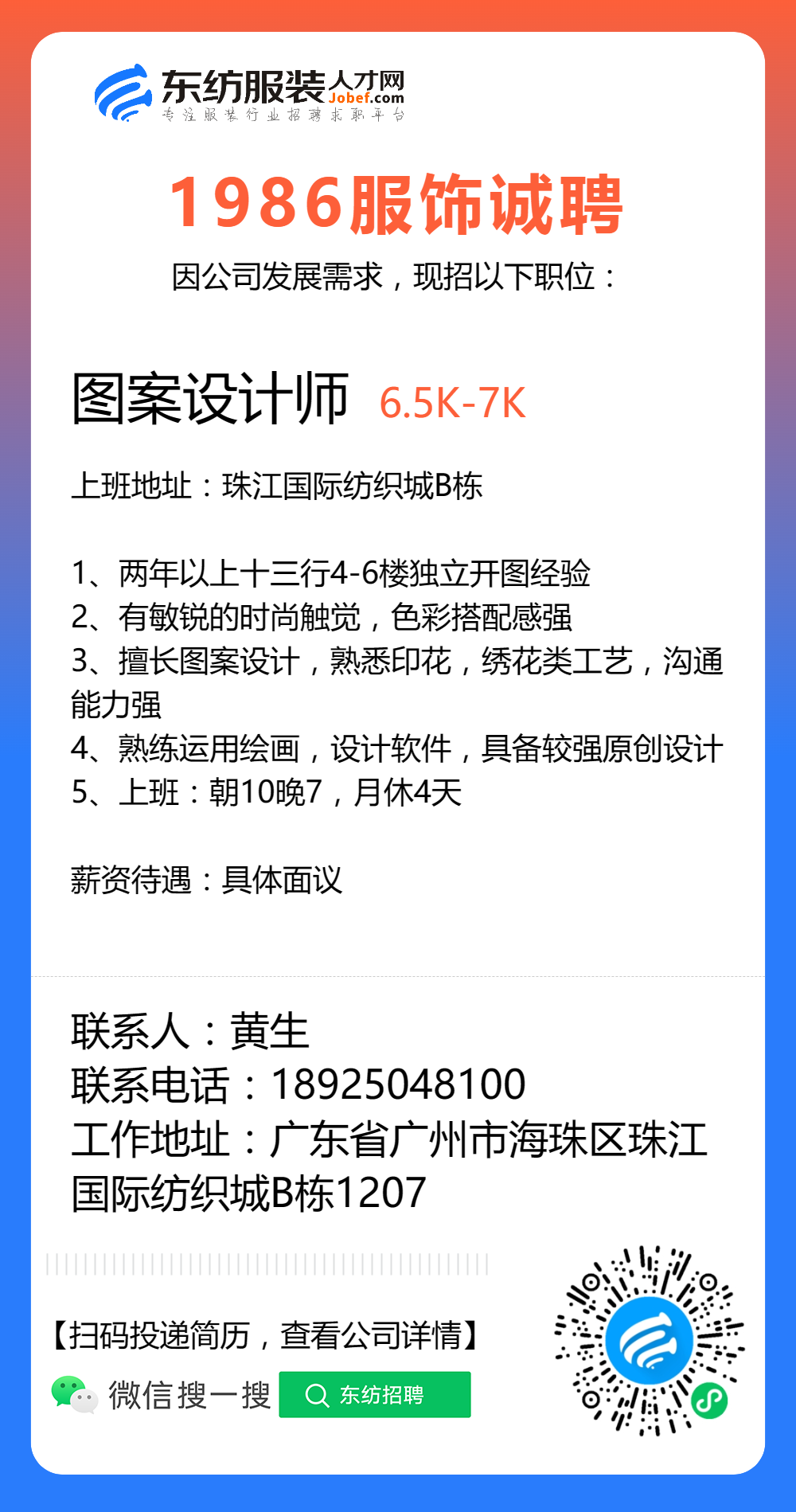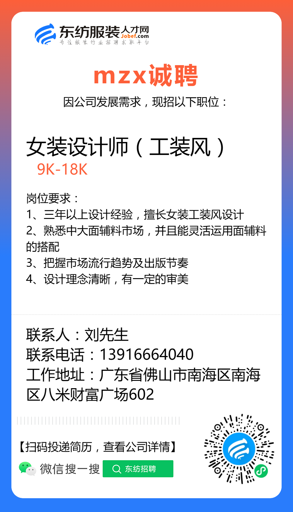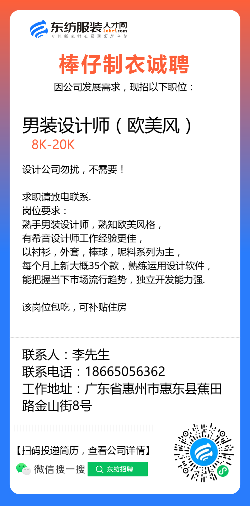 服装招聘·设计类丨8. 6 号,女装设计师、男装设计师、童装设计师、设计助理.....